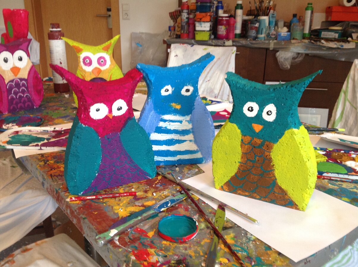 Each Wednesday from 2 pm to 4 pm we experience colourful and creative hours at ARTelierzeffererHOF. Together we experiment with colours and shapes and paint a styrofoam sculpture with acrylic paint. In the end each child can take back home its own work of art.