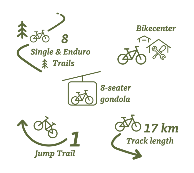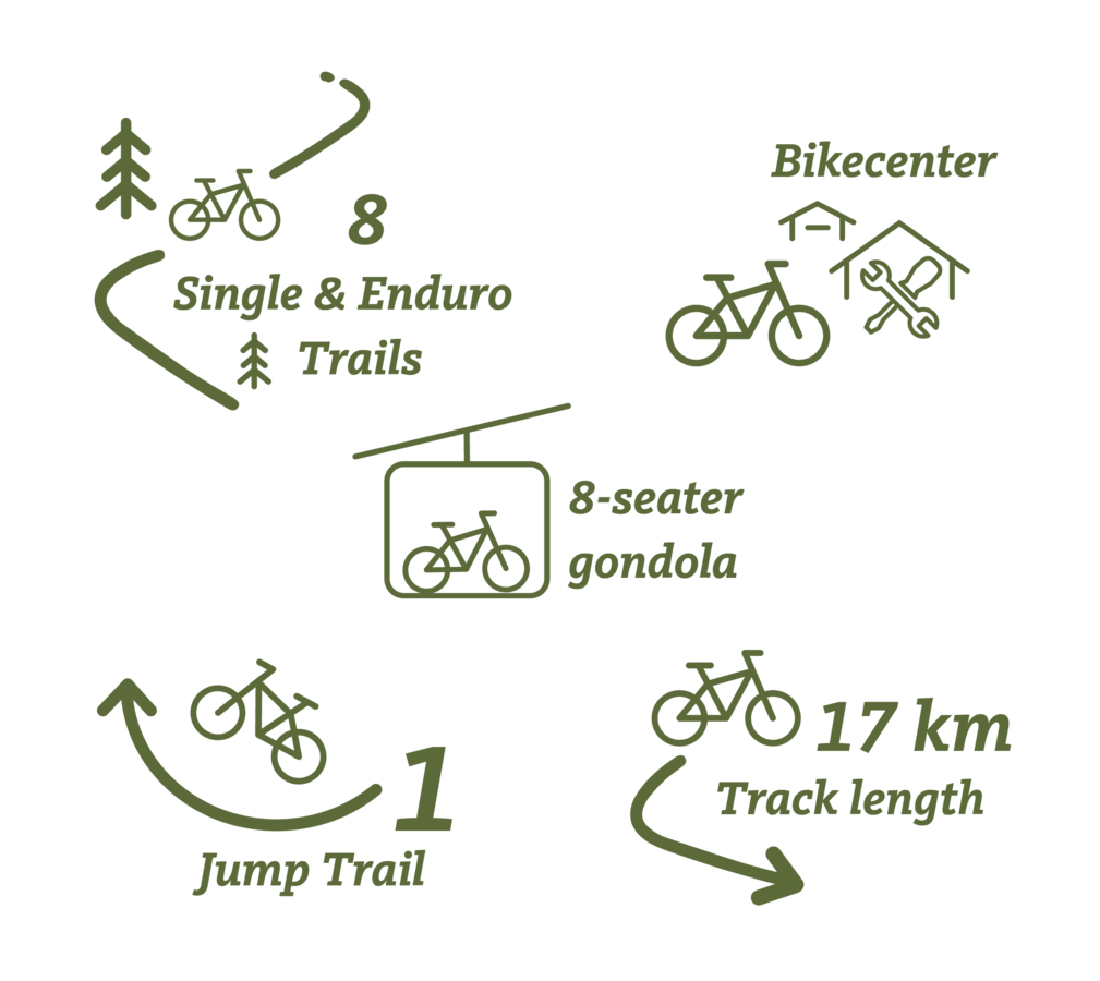 Od modrých trailů pro začátečníky až po nově vybudované enduro stezky - každý fanoušek horských kol si zde jistě najde to své. Další zajímavostí je stezka Jump Trail, která byla otevřena v roce 2023.