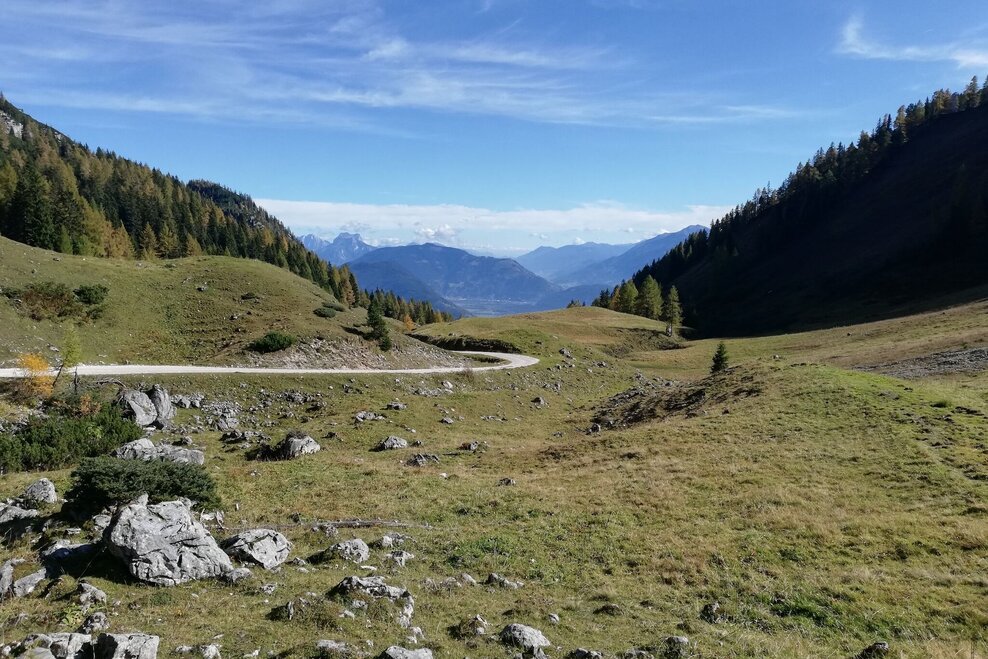 From the Schönmoos parking lot, walk a short distance along the forest road, turn right following the markings and hike moderately uphill along forest roads, past the Hochtausing entrance, to the Langpoltenalm. Shortly after the pasture and the gate behind it, turn right and hike along a steeper path to the "Gott-sei-Dank-Bankerl". Here you should enjoy the magnificent view before you turn right, this time flat, to the managed Hochmölbinghütte. Return along the same path or across the beautiful high moor to the Liezener Hütte and over the Hochtor, steeper downhill, to the Langpoltenalm. You come back to the ascent path, on which you march back to the starting point.