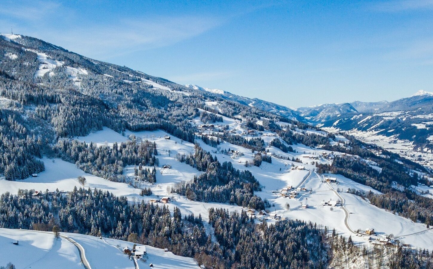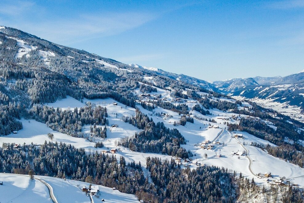 Past a road with magnificent panoramic views with traditional mountain farms, along a cleared mountain road with little traffic at approx. 1.000 metres above sea level above the Enns valley.