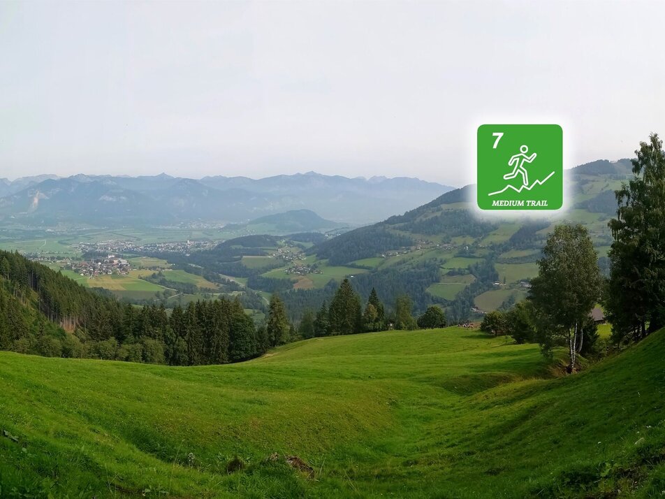 The first kilometer is initially flat and then with short hills on meadows and forest paths until we reach a forest road. From here we walk along a gravel path and then two kilometers on asphalt towards Raumberg. We turn left twice and approach the Raumbergerwald along the forest road. As a variant, we can also run to the right here on the Grasslherrgottweg loop. On the next two kilometers we overcome 220 meters of altitude difference. Alternating on forest and hiking trails we reach the Obermoserhof at 1020 meters above sea level. It is best to cross the farm at walking pace. The downhill starts unspectacularly on a road. After a kilometer left and then left again into the forest and after a short time on the forest road we turn right down. The forest floor takes us before we end up on the forest road again. After a bend we know our way around again and turn right into the path back to Donnersbach.