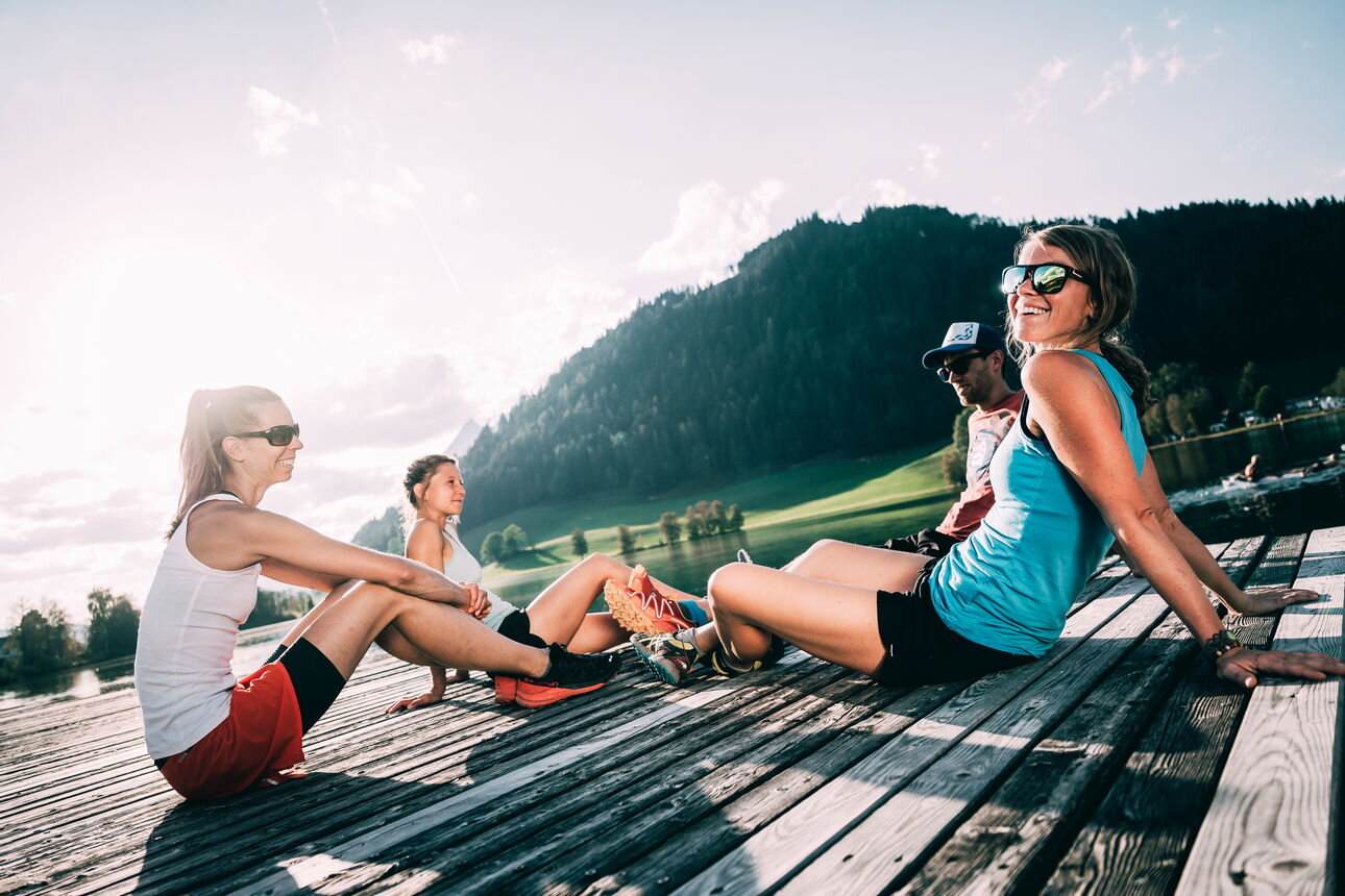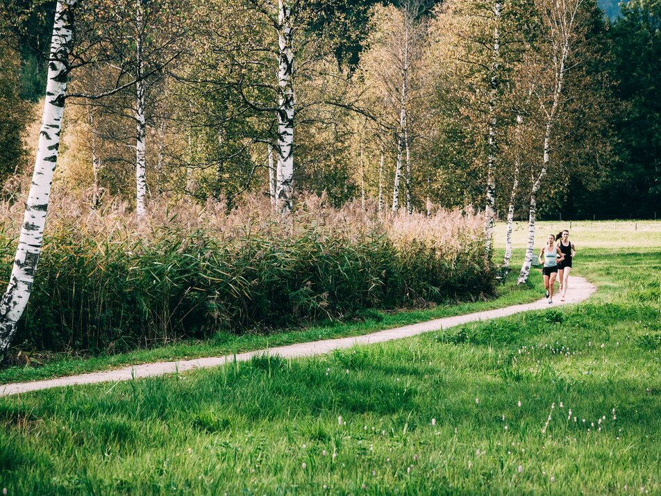 With the lake in view, off we go. After a short walk we reach the lakeshore. Especially in May and June there is a botanical highlight: the Siberian iris. We run along the campsite, cross a farm and after a short steep climb we come to the "Höhenweg" with a perfect view of the Putterersee. On the left we go up to the Kulm and continue straight towards Hohenberg. From here we return to the campsite on roads with little traffic and along the Putterresee lake to the starting point.