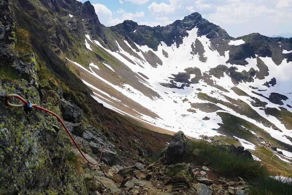 From here you follow trail n° 702 slightly uphill into Vetternkar cirque until you reach the meinans of miners' houses. From here the trail starts to ascend steeper and leads up to Rotmandlspitze via several switchbacks. The summit is a quite broad ridge and from here you enjoy views into Giglach and Duisitzkar cirques.