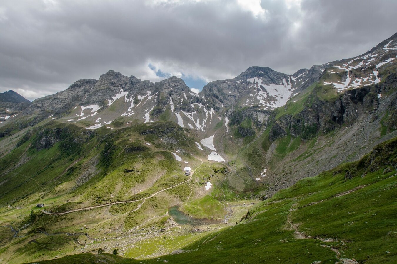 From the hiking trail head at Ursprungalm chalet you take trail n° 771 to Preuneggsattel mountain saddle (approx. 1 hour) and the Giglachsee Lakes. From Giglachseehütte chalet you now follow trail n° 702 and pass by Ignaz-Mattis-Hütte chalet. You descend a little to the trail junction 702/776 at Tonnerhütte chalet.