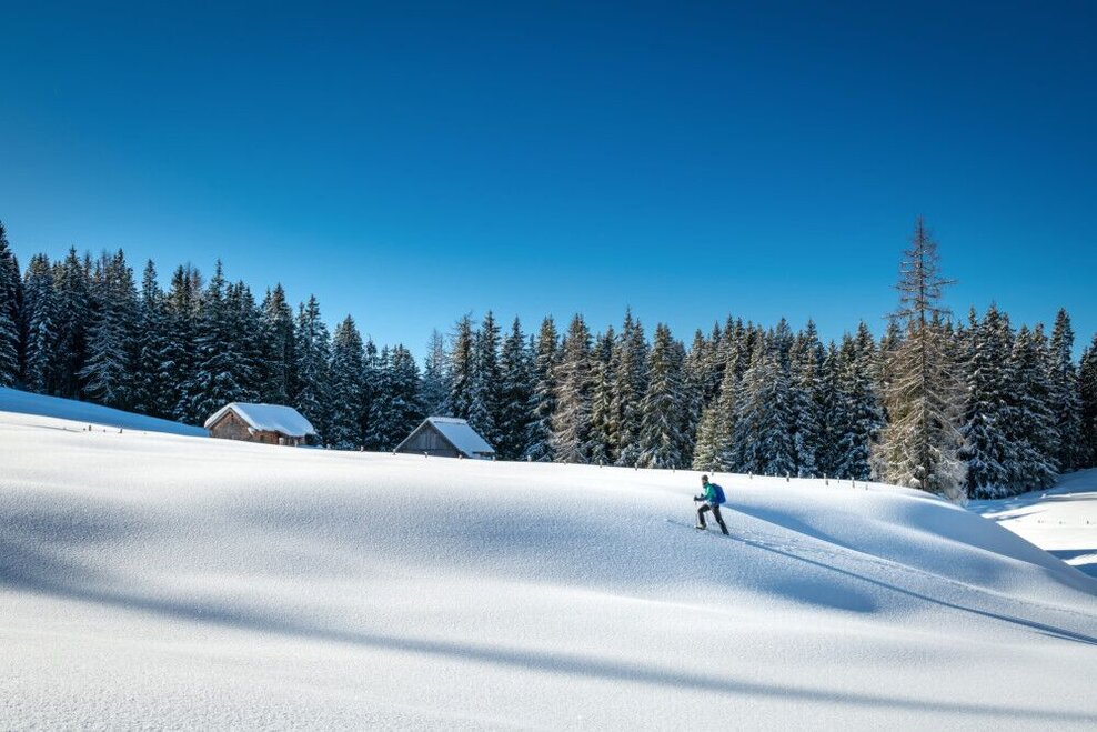 Through the breathtaking Öfenschlucht gorge you walk up the serpentines, over the Seeboden-Rahnstube and Brandmoos following the signs to the Viehbergalm.The huts are not managed in winter, nevertheless, or precisely because of this, the Viehbergalm is a unique place to enjoy the peace and quiet of winter.