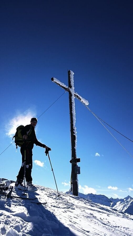 The last 100 hm over the steep NE ridge require careful tracking until you reach the mostly wind-blown summit cross.