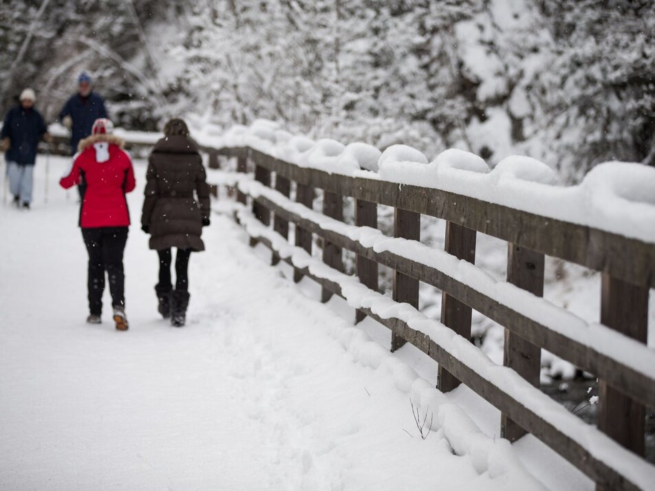 Good winter shoes, warm clothing, tuque, and gloves required - if available also use shoe chains. Because of the vicinity of the creek it can be slippery and icy at some sections. Good winter shoes, warm clothing, tuque, and gloves. You might also want to carry a small backbag with a warm drink in a thermos jug.