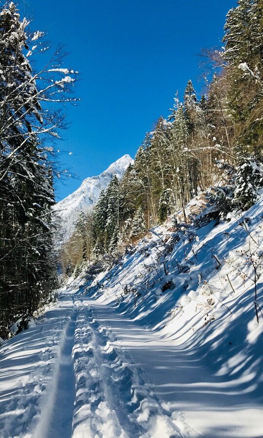 In winter, caution is advised even on seemingly easy hikes. In shady areas, the ground can be slightly icy, and there may be avalanche danger below slopes. Mountaineering is therefore primarily a matter of personal responsibility – even more so in winter. Tourist associations and avalanche warning services assume no liability whatsoever based on the information provided.