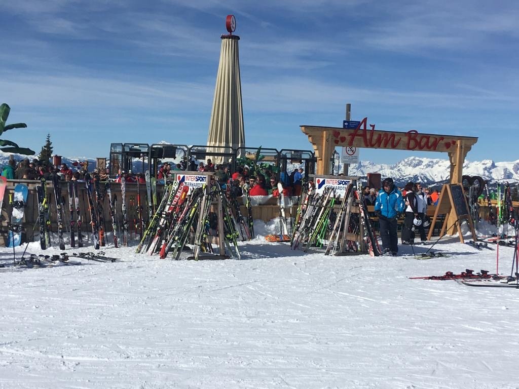 At the highest point of the Reiteralm top music and great atmosphere will expect you. Large patio, great views and deck chairs.