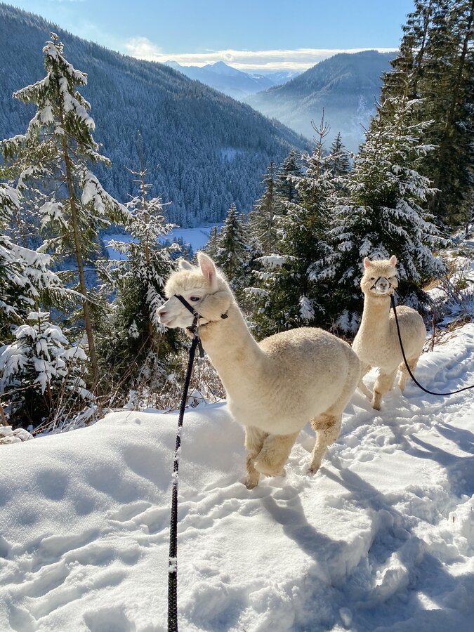 Enjoy an unforgettable experience with our alpacas around the Dachstein. Let yourself be captivated on a guided alpaca hike and experience how gentle and peaceful these wonderful animals are.