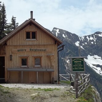 Krummholzhütte mit Blick zum Dachstein