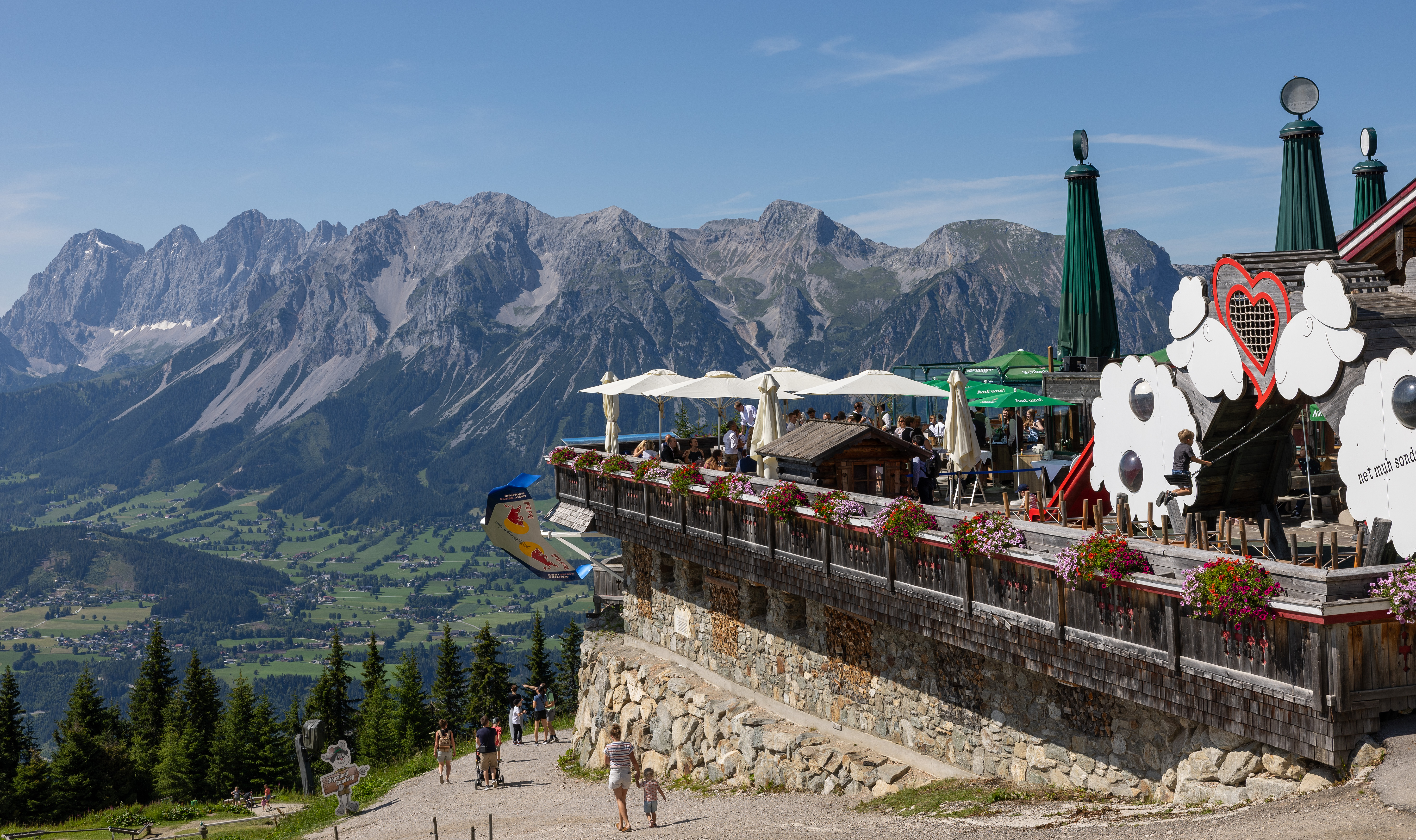 Přímo u horské stanice Planai bude vaše zákazníky očekávat na Schaf-Alm s nezaměnitelným panoramatickým výhledem na Dachstein a údolí Enns.