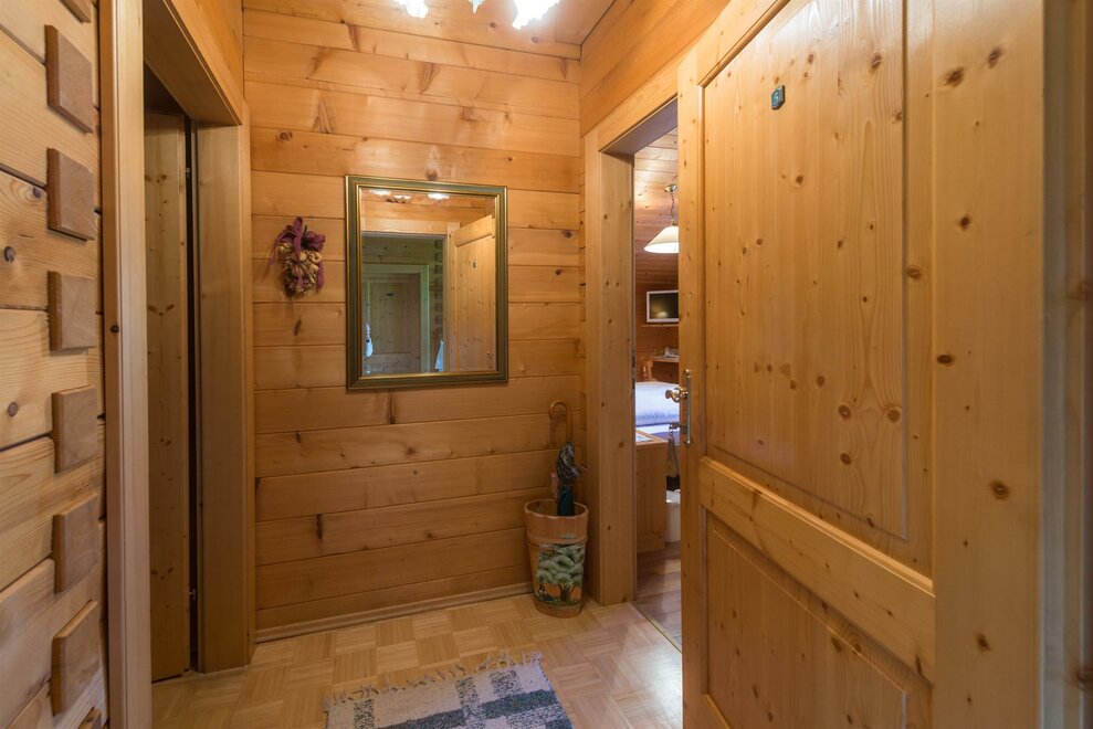 Velmi prostorný apartmán o velikosti 130 m2. Zvláštní útulnost s keramickými kamny v plném dřevěném bloku s balkonem a výhledem na hory ve všech směrech. Apartmán zabírá celé druhé patro bio-dřevěného domu.