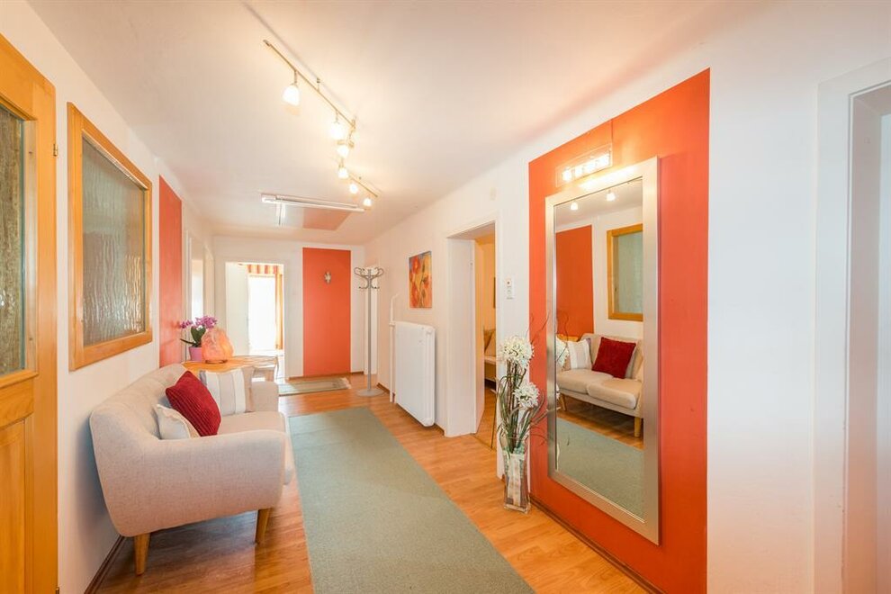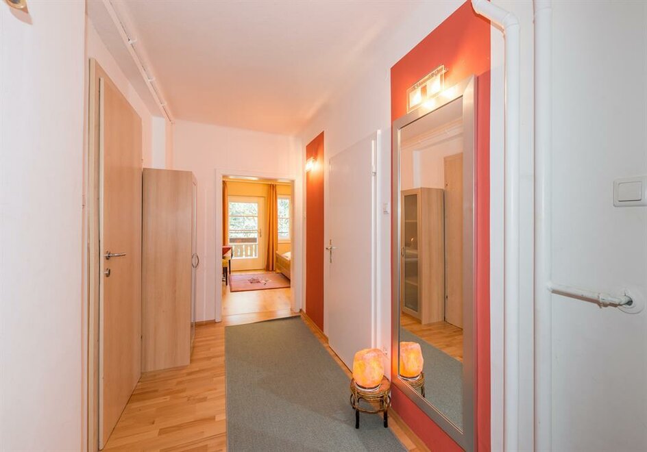 Dopřejte si prostor! Apartmán v moderním stylu ve 2. patře s více než 100 m² a nádherným výhledem na okouzlující horskou krajinu! Kuchyně s útulným posezením a obývací zónou, balkon s horským panoramatem, 4 samostatné ložnice (3 x dvoulůžková a 1 x jednolůžková s přistýlkou), prostorná hala se šatnou, 2 x koupelna a 2 x toaleta, stejně jako komora. Ložnice jsou vybaveny plochou obrazovkou, rádiem a umyvadlem. Kuchyně je vybavena 4plotýnkovou sklokeramickou varnou deskou, lednicí, myčkou nádobí, mikrovlnnou troubou, kávovarem, vodním skrtorem, toasterem, troubou atd. Bezplatné Wi-Fi. Váš čtyřnohý přítel je na dotaz srdečně vítán.