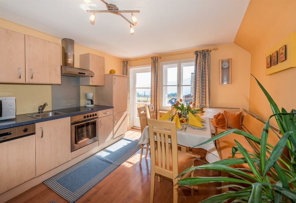 Dopřejte si prostor! Moderně zařízený apartmán v 1. patře s více než 60 m² a krásným výhledem na okouzlující horskou krajinu! Kuchyně s útulným posezením a obývací částí, balkon s horským panoramatem, 2 samostatné ložnice (1 x dvojlůžko a 1 x jednolůžkový pokoj s přistýlkou), předsíň s šatnou, 1 x koupelna se sprchou a WC, fén. Ložnice jsou vybaveny plochou TV a rádiem. Kuchyně je vybavena 4-bodovou keramickou varnou deskou, lednicí, myčkou na nádobí, mikrovlnnou troubou, kávovarem, varnou konvicí, toustovačem, troubou atd. Bezplatné Wi-Fi připojení. Vaši čtyřnohí přátelé jsou na požádání srdečně vítáni.