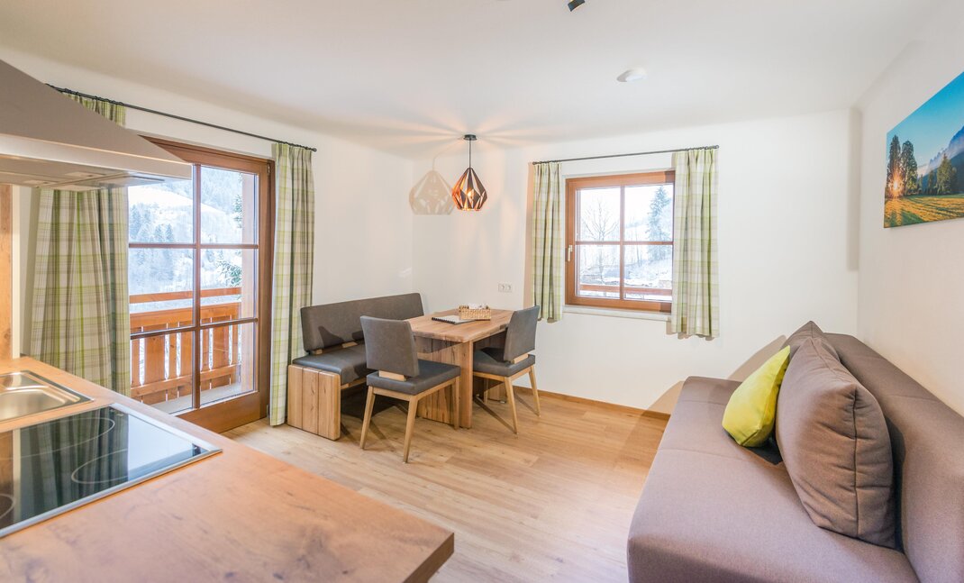 Apartmán "Schnee" je útulně zařízený a má 25 čtverečních metrů, což poskytuje místo pro 2 osoby. Obsahuje 1 ložnici s boxspring postelí, 2 ploché TV a koupelnu. Kuchyně je plně vybavená. Pro větší skupiny o 6 osobách je možné si k apartmánu "Kristall" přikoupit další ubytování (SchneeKristall).