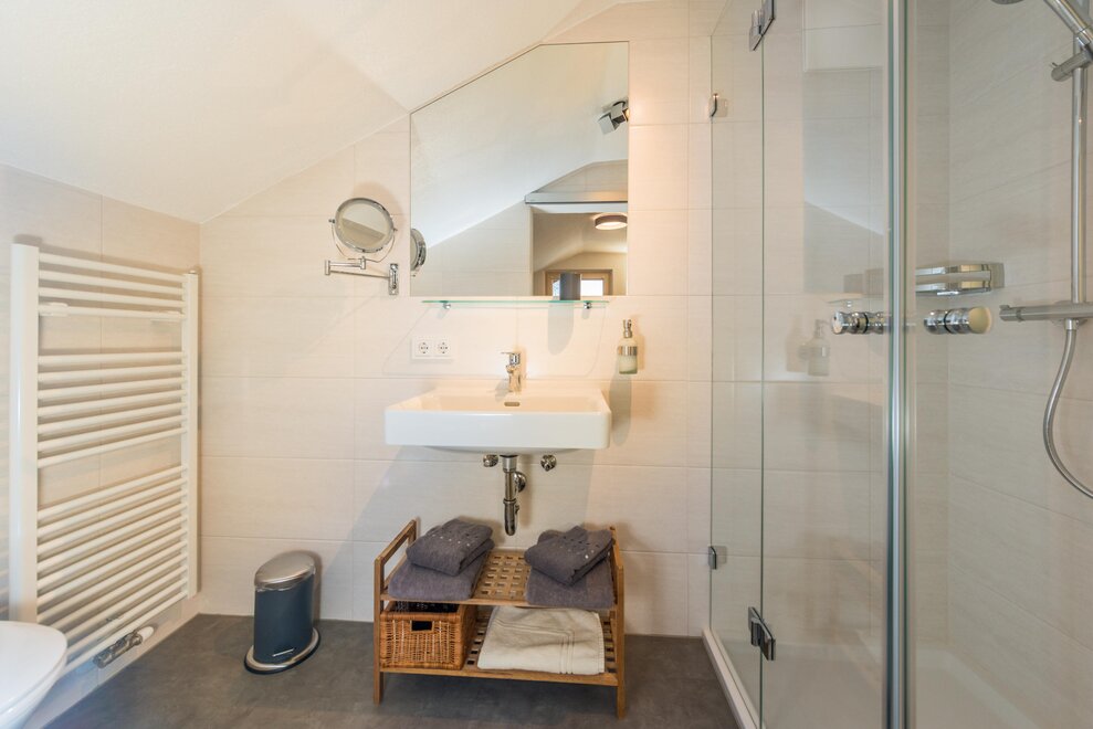 Apartmán "Heu" má 35 metrů čtverečních a je velmi prostorný, nabízí místo pro 2 osoby. Disponuje 1 ložnicí s boxspringovou postelí, rozkládací pohovkou a 2 plochými televizory. Kromě toho apartmán obsahuje 1 koupelnu se samostatným WC. Kuchyně je plně vybavena. Pro větší skupiny o 4 osobách lze rezervovat také apartmán "Blume" (HeuBlume).