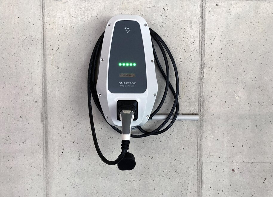 Bezplatné parkování pro automobily pod stříškou s nabíjecí stanicí 11kW, služba s pečivem