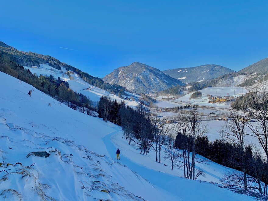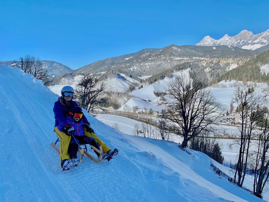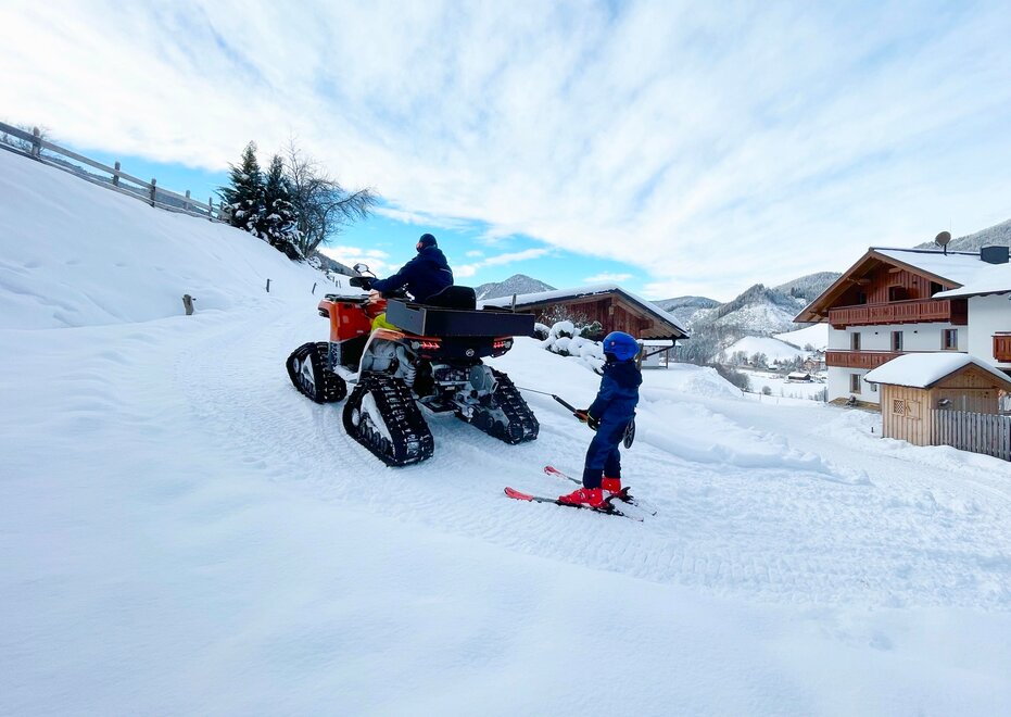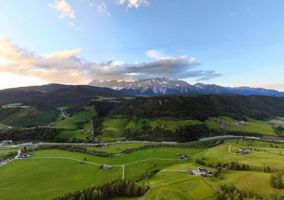 Dálnice Tauernautobahn A10, výjezd 63, státní silnice (38 km), sjezdovka Reiteralm-Hochwurzen (podchod), přes most, u Cafe Hermann doleva podél cyklostezky Ennstalradweg, po 500 m doprava nahoru.