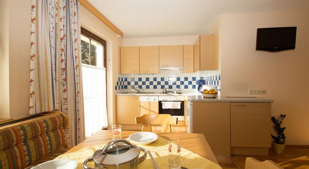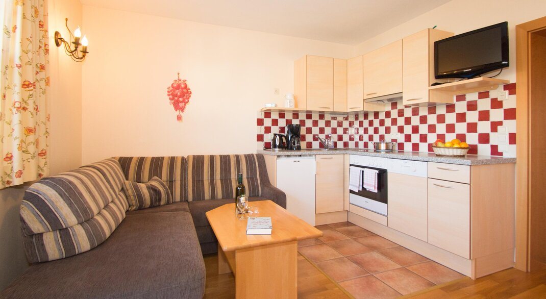 Apartmán 35m² s obývacím pokojem a plně vybavenou kuchyní, oddělenou ložnicí, sprchou, umyvadlem a toaletou, TV, rádiem, W-Lan a telefonem. V obytné kuchyni je pohovka pro 1 osobu.