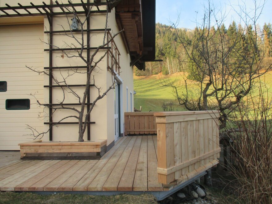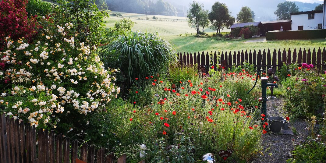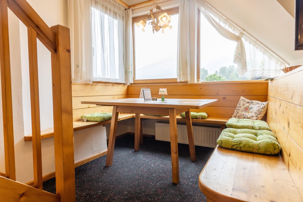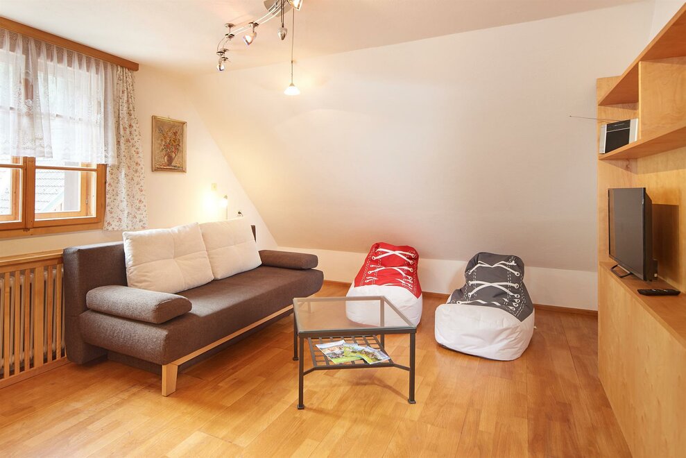 Appartement "Gänsegartl" cca 30 qm, velmi útulný byt pro 2 až 3 osoby, obytná ložnice s manželskou postelí a jednolůžkem. Útulný koutek s kabelovou televizí, internetovým připojením, WiFi/WLan, oddělená kuchyňská nika se sporákem se 4 plotýnkami (trouba), lednice s mrazákem, kávovar a rychlovarná konvice. Velmi příjemná, na jih orientovaná terasa s zahradním nábytkem, skvělý výhled na horské panorama