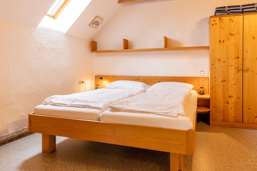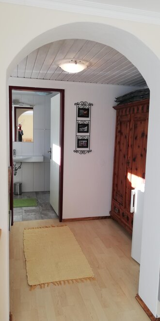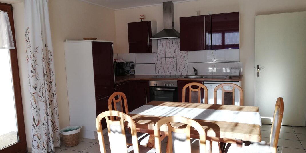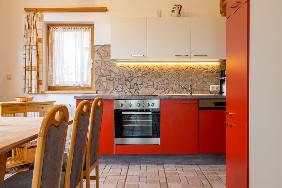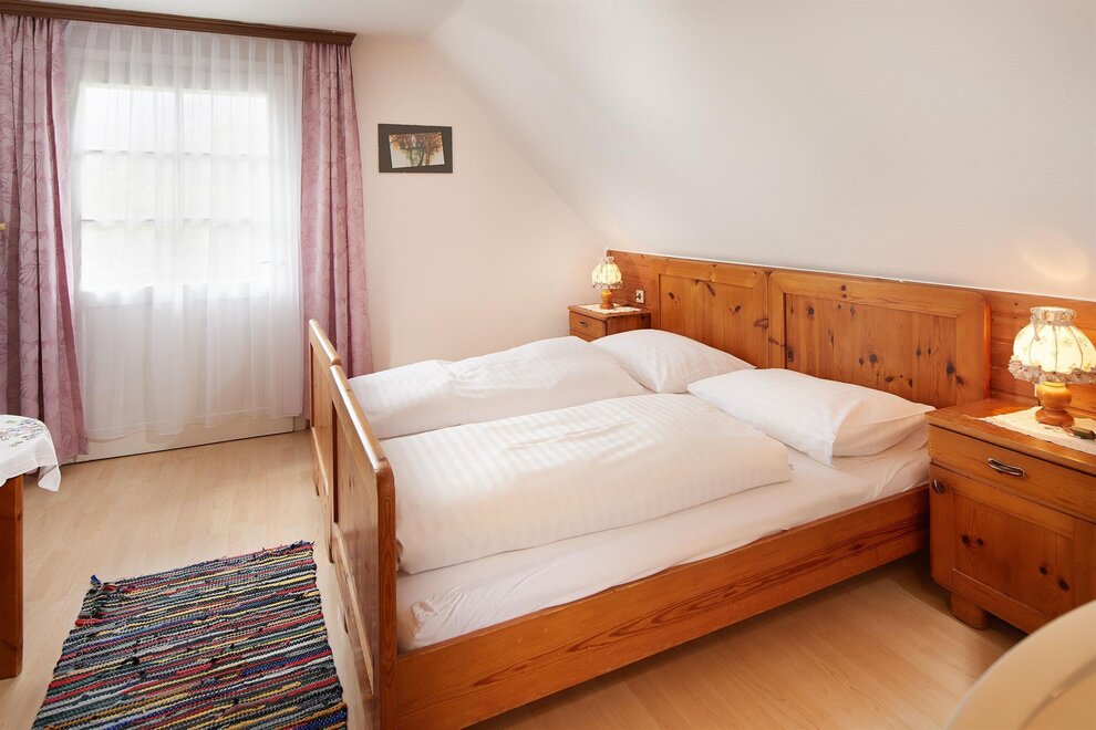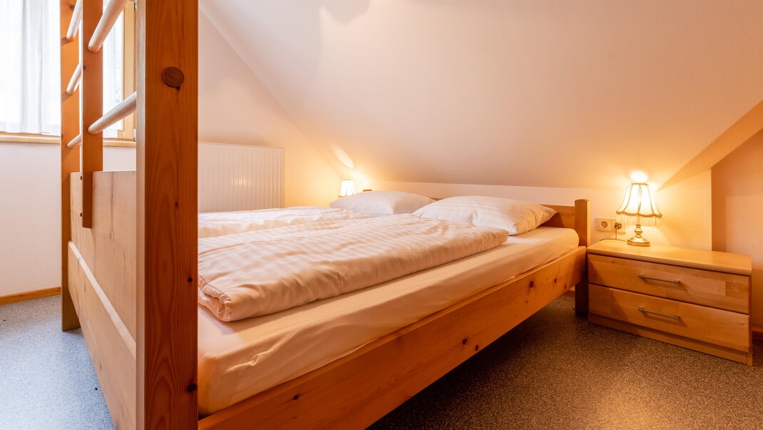 Byt "Kreuzgiebel" v dobrodružném domě, cca 80 m² pro 6 osob; předsíň, sprcha, oddělené WC, 3 ložnice s 2 lůžky v každé. "Kreuzgiebel-Dachstuhl" vytváří zvláštní atmosféru v obytné kuchyni se staveními pro děti. Sporák se 4 plotnami a troubou, myčka nádobí, lednička s mrazákem, kávovar a rychlovarná konvice, pohovka, internetové připojení, WiFi/WLan a kabelová TV přispívají k vaší pohodě.