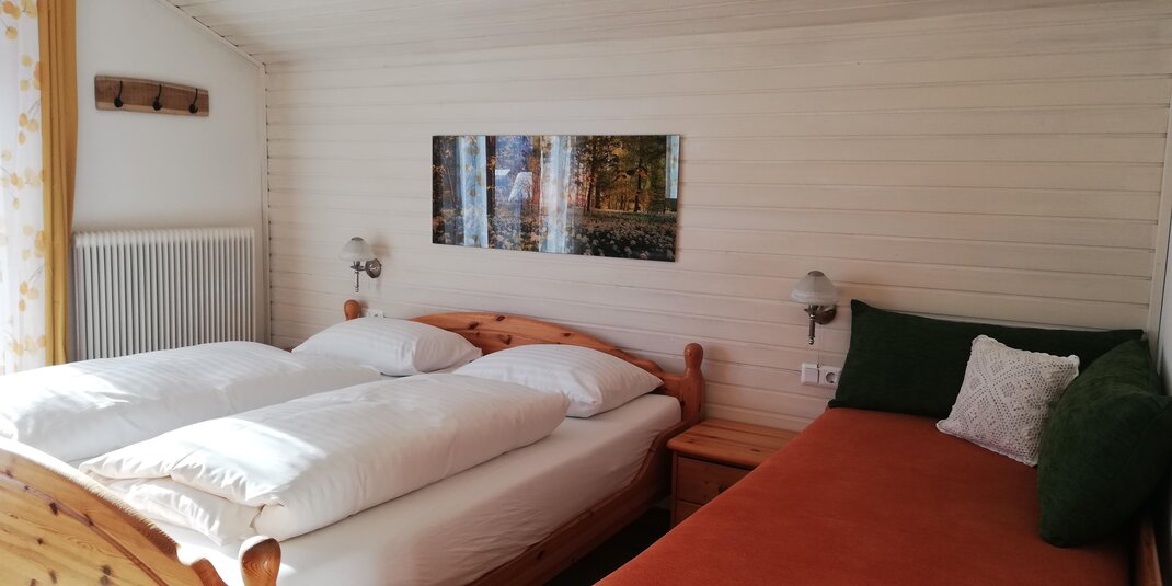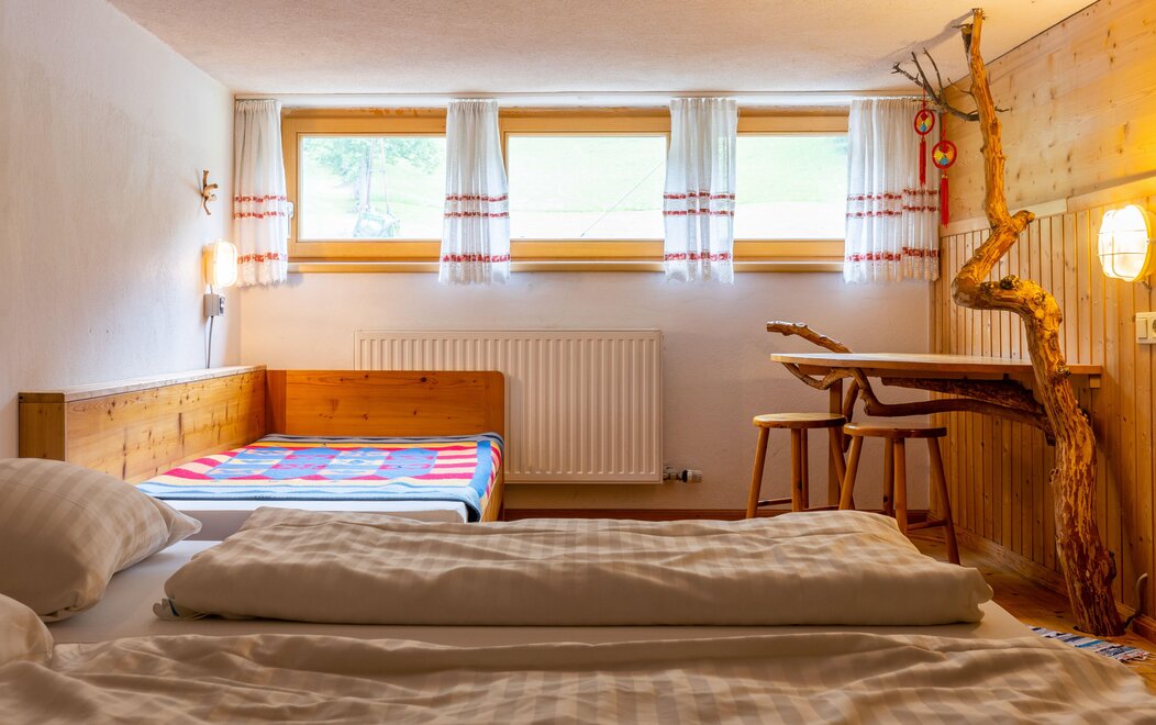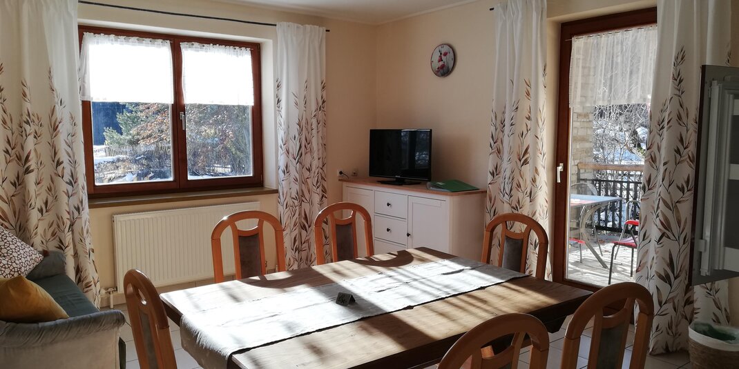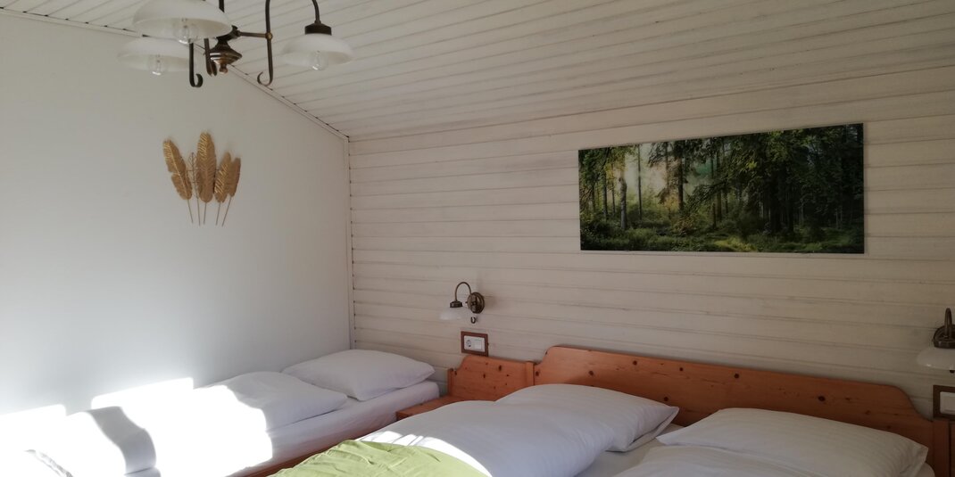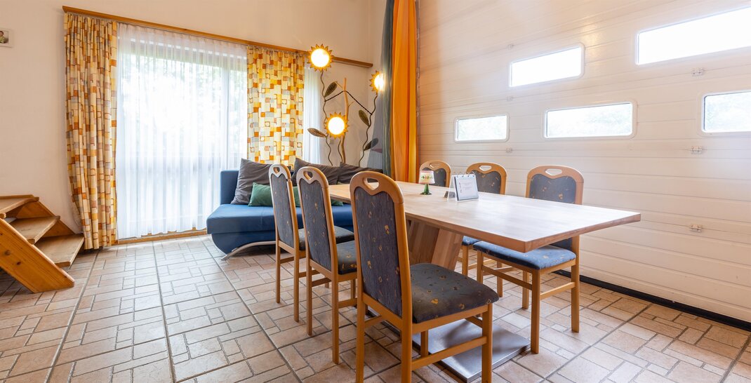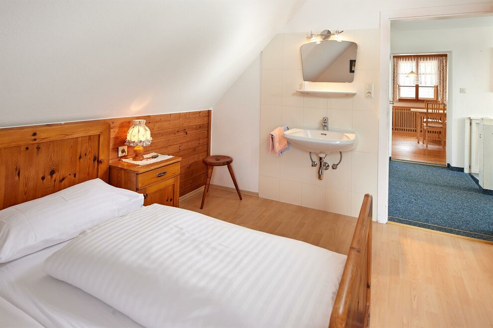 Byt "Kreuzgiebel" v dobrodružném domě, cca 80 m² pro 6 osob; předsíň, sprcha, oddělené WC, 3 ložnice s 2 lůžky v každé. "Kreuzgiebel-Dachstuhl" vytváří zvláštní atmosféru v obytné kuchyni se staveními pro děti. Sporák se 4 plotnami a troubou, myčka nádobí, lednička s mrazákem, kávovar a rychlovarná konvice, pohovka, internetové připojení, WiFi/WLan a kabelová TV přispívají k vaší pohodě.