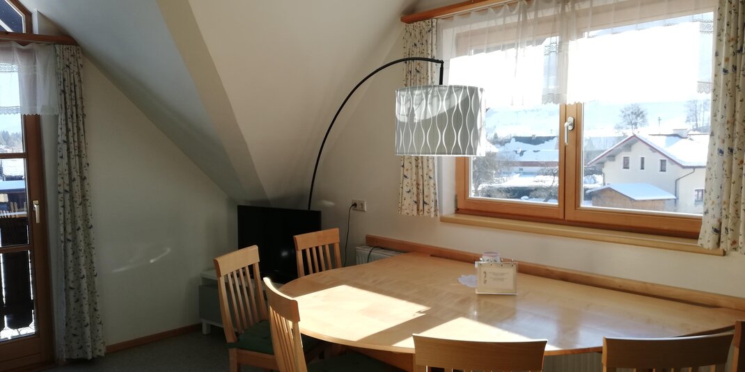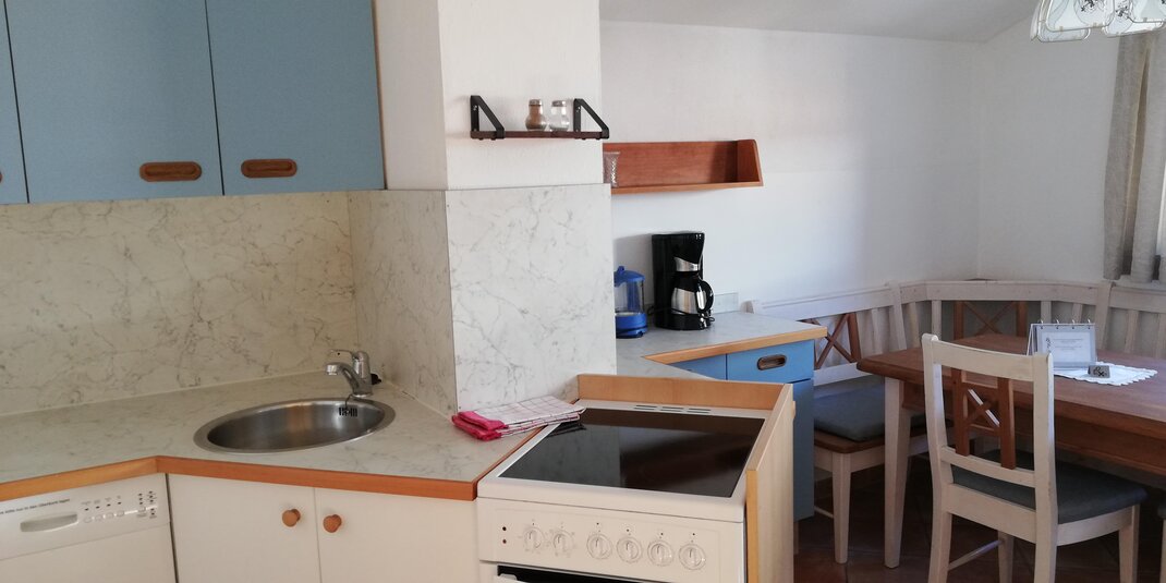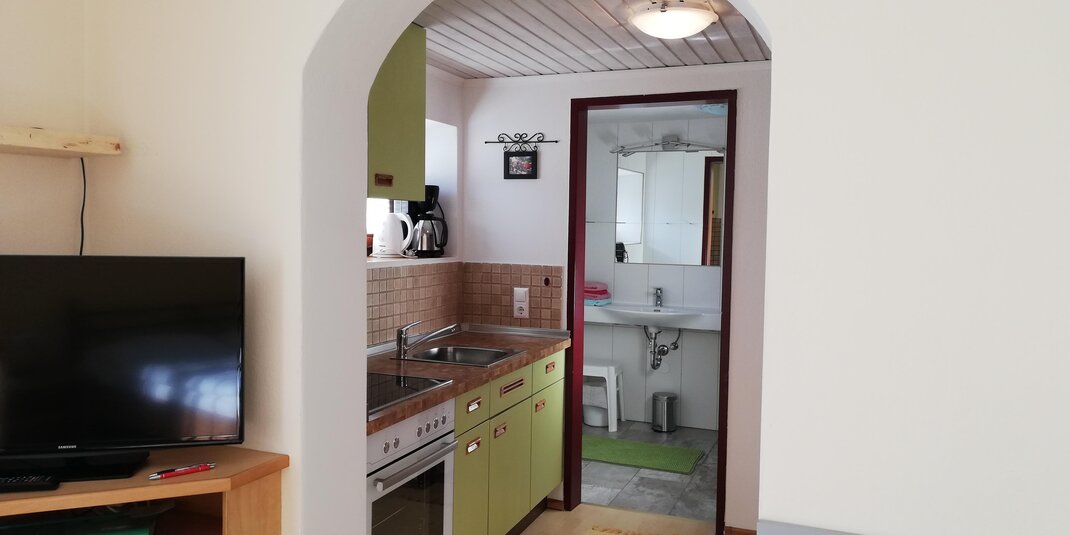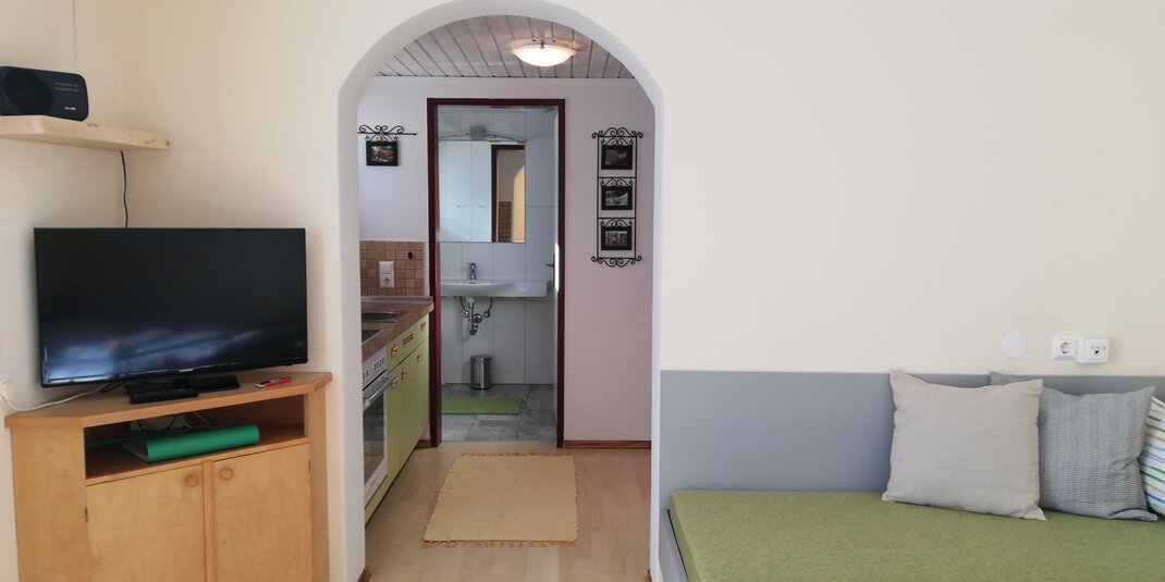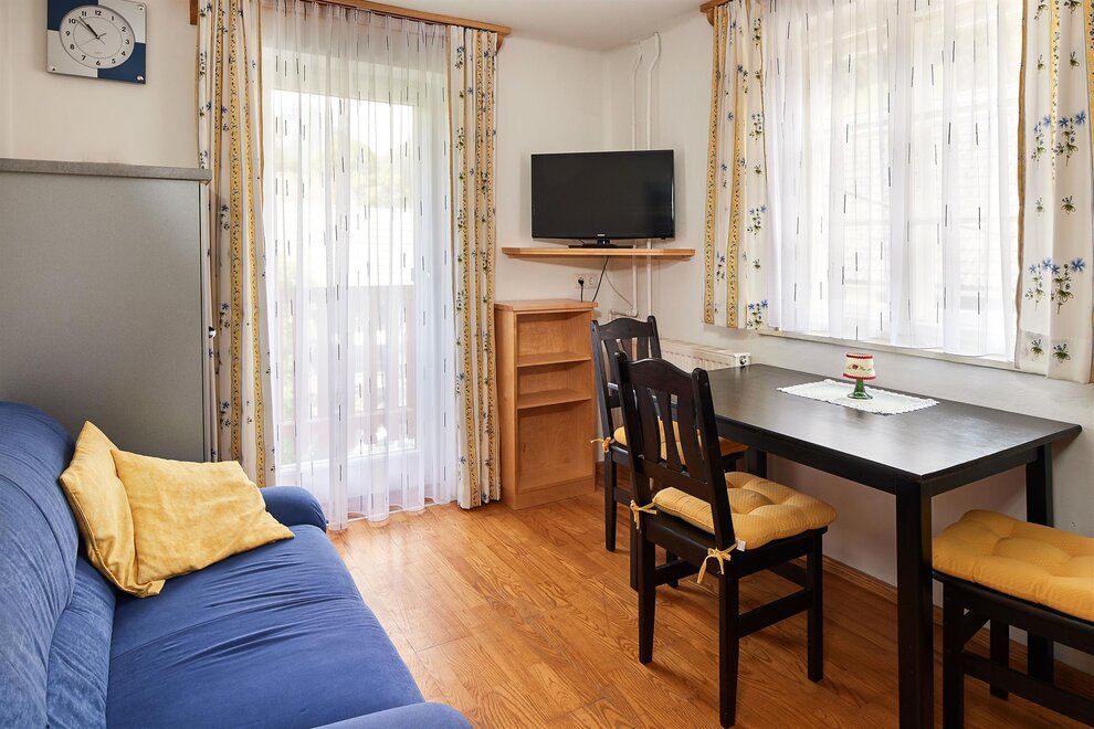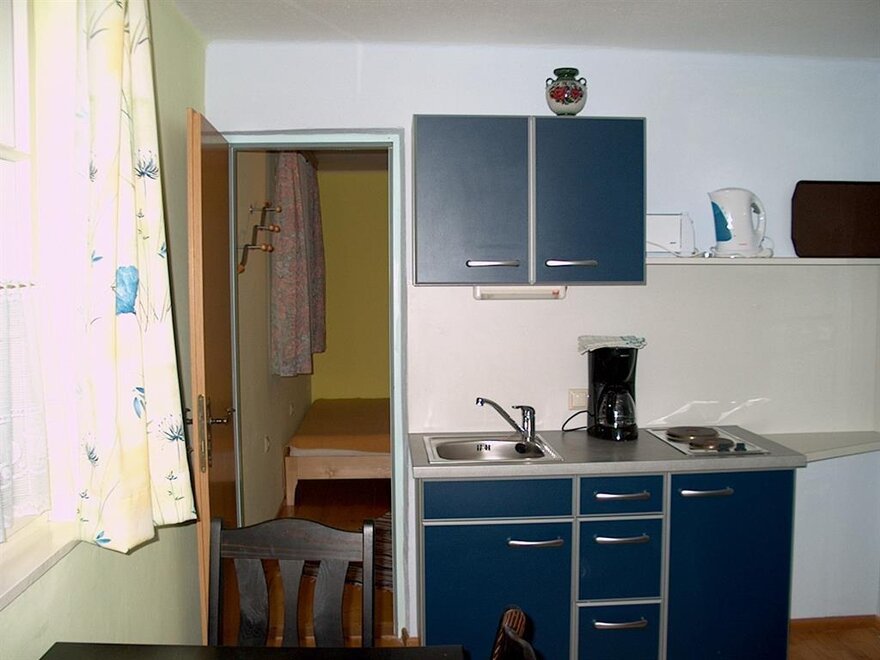 Byt "Dirndl" cca 30 m², velmi útulný malý byt pro 2 až 3 osoby, 1 ložnice, obývací kuchyň s dvouplotýnkovým vařičem, malou troubou, kabelovou televizí, internetovým připojením, WiFi/WLan, lednicí, kávovarem a rychlovarnou konvicí.