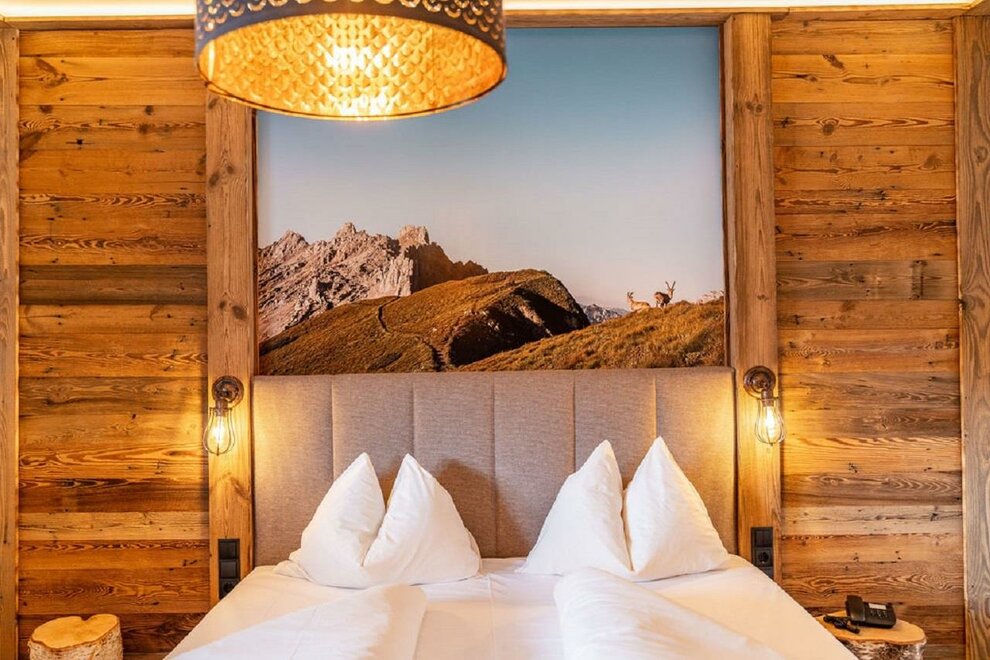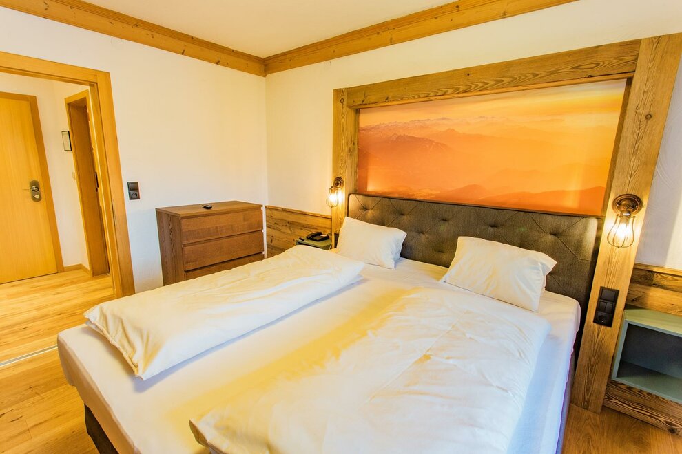 Pokoj "Panorama Kulmberg" je vybaven postelí typu boxspring, posezením s 1 rozkládacím futonem, balkonem, koupelnou a odděleným WC, TV a telefonem, stejně jako trezorem.