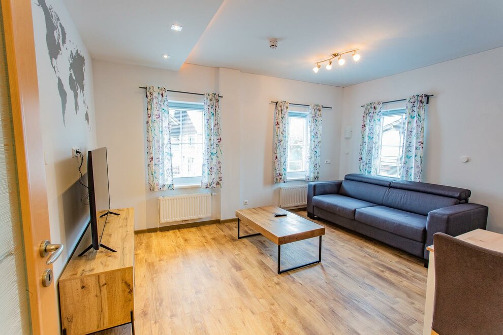 Naše hotelové apartmá "Kulmberg 2" nabízí ideální ubytování pro rodiny a přátele. Je vybaveno kvalitní kuchyní s jídelním koutem, obývacím pokojem včetně rozkládací pohovky, ložnicí s manželskou postelí, koupelnou se sprchou a vanou a odděleným WC.