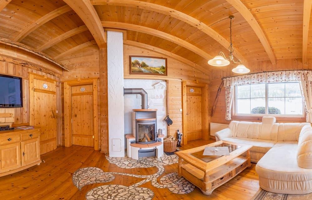 - Moderní styl se rustikálním šarmem – prémiový chalet byl postaven v roce 2024