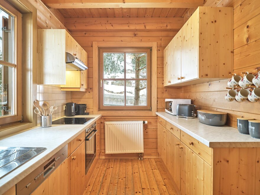 Samostatná kuchyň je kompletně a moderně vybavena, k dispozici je také pračka a sušička.