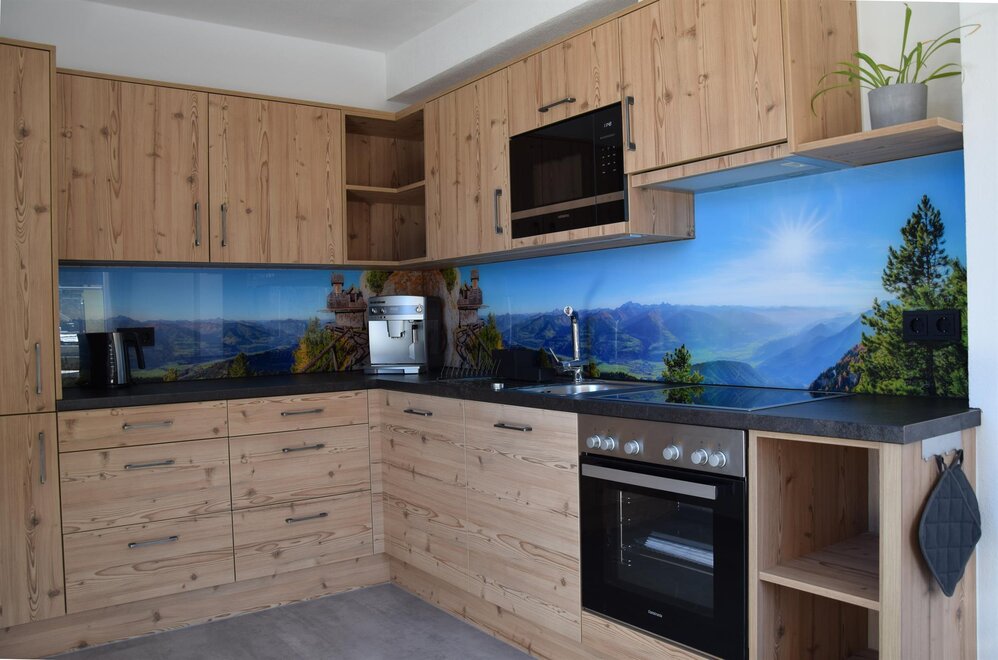 Cooking together is no problem for us. The fully equipped kitchen has a fridge with freezer compartment, dishwasher, electric stove, oven and kettle, as well as a microwave and everything else you need for cooking. You can enjoy a cup of coffee from the fully automatic coffee machine in the small seating area.