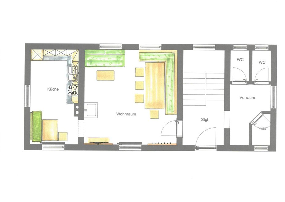 V našem domě pro sebesloužící je v přízemí velká obývací místnost s krbovými kamny, satelitní TV, pohodlnou pohovkou a velkým jídelním stolem. Také zde je velká, plně vybavená kuchyně s malým posezením. V přízemí se nacházejí také toalety. V horním patře domu se nachází 4 útulné ložnice s místem pro až 10 osob. V suterénu domu je koupelna se 2 umyvadly a 2 sprchami. Také jedno z vrcholů Alpenvereinshauses, vlastní boulderová místnost, se nachází v suterénu.