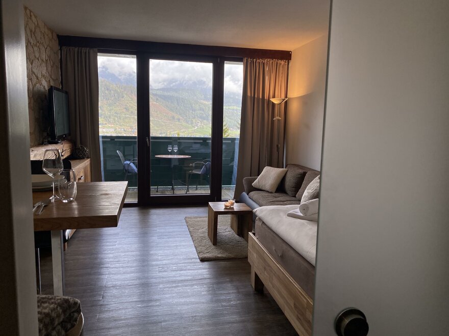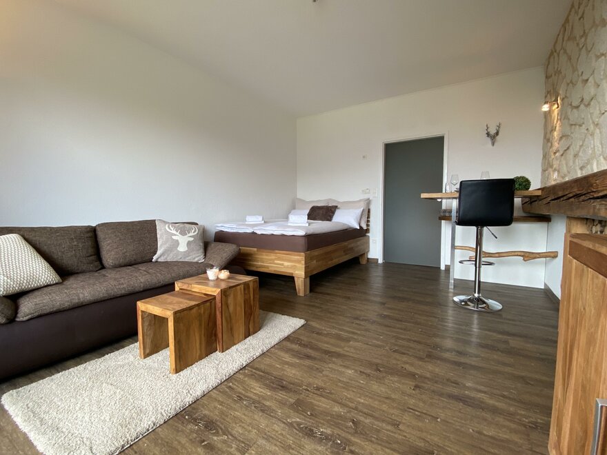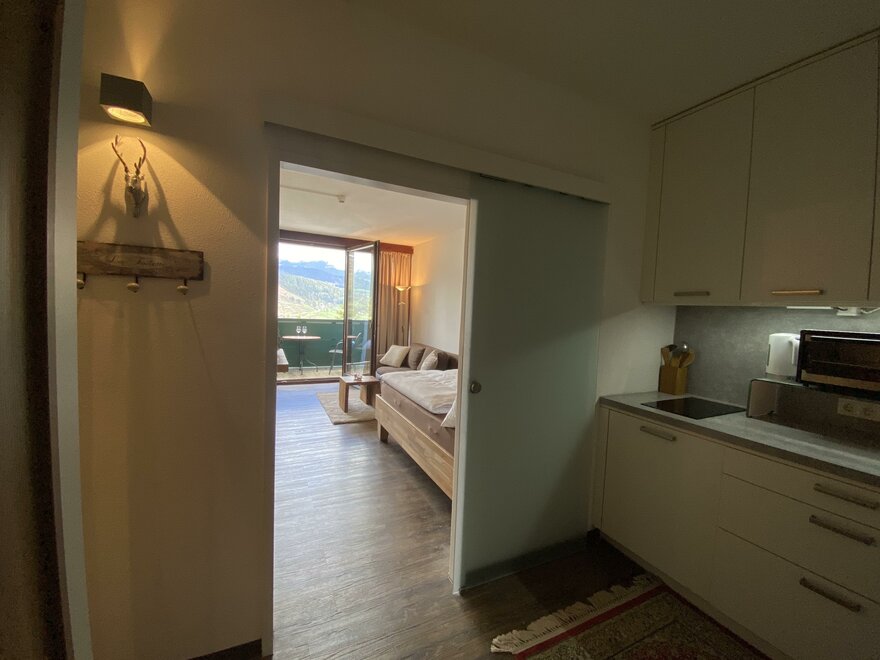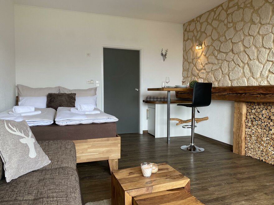 Studio apartmá o velikosti 30 m² pro až 4 osoby (1 manželská postel a 1 rozkládací pohovka v obývacím pokoji), 1 koupelna se sprchou/WC a otevřená kuchyně. Úžasný výhled z balkonu na okolní lyžařské oblasti Schladming-Dachstein. Bezplatné parkování.