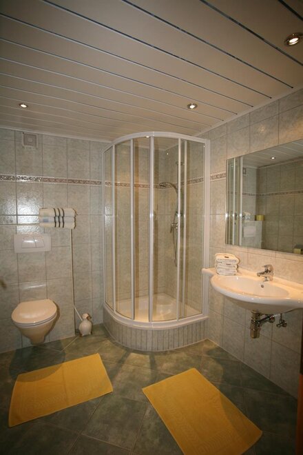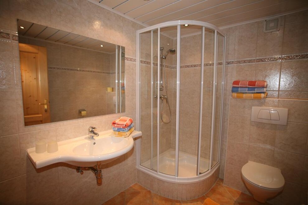 Nový apartmán se skládá ze 3 ložnic všech s vlastní koupelnou s sprchou/WC, prostorné obytné kuchyně s kachlovým sporákem, myčkou nádobí, SAT/TV atd. velká předsíň, ručníky a ložní prádlo jsou k dispozici