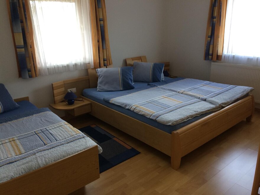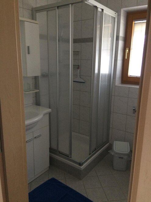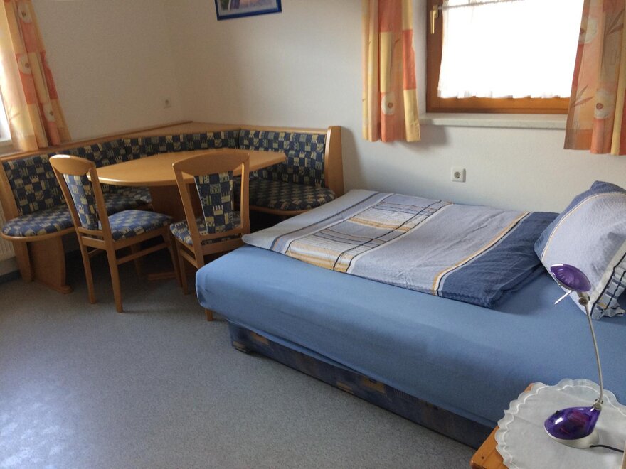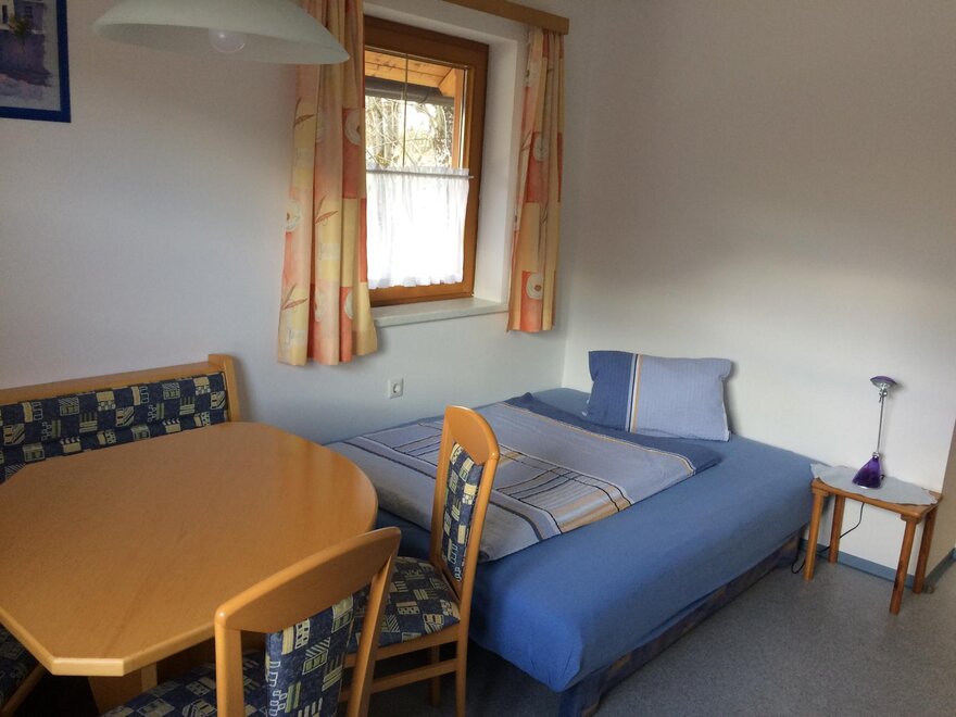 Naše apartmá o velikosti 43 m² nabízí místo pro 2 až 5 osob. K dispozici je ložnice (pro 3 osoby) a obývací spací prostor s plně vybaveným kuchyňským koutem, jídelním koutem, rozkládací pohovkou a satelitní televizí. Sprcha a toaleta jsou oddělené.