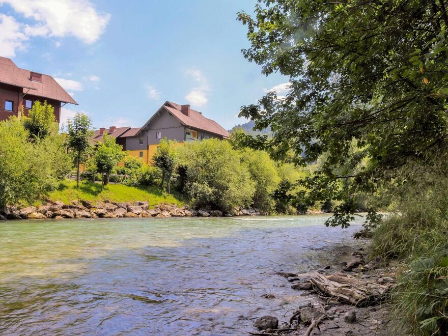 Nekuřácký apartmán o rozloze 40 m² v přízemí pro 4 osoby (2 samostatné ložnice). U 2 osob může být 2. ložnice na vyžádání dokoupena. Příplatek je 50 EURO za den. Domácí zvířata povolena 5 € za den, psí sáčky a vodítka přímo v ubytování. Možnost koupání pro psy v protékající řece. Parkoviště na pozemku, zahrada před domem k dispozici, stůl a židle, stejně jako lehátka jsou k dispozici. Dvě ložnice s manželskými postelemi, v hlavní ložnici jsou komfortní postele s elektricky nastavitelným lamelovým roštem. Pohodlná, plně vybavená kuchyně se zmyvadlem na nádobí, troubou s keramickou deskou, mikrovlnnou troubou, ledničkou, pračkou se zabudovaným sušičem, kabelovou TV v každé místnosti. Sprcha s WC. Zdarma W-Lan s rychlostí 150 Mb/s, velmi centrální poloha, 5 minut chůze do kongresového domu, 8 minut chůze k lanovce Planaibahn, extra pronajaté lyžářské úložiště u lanovky Planaibahn, 10 minut do centra města, supermarket, bazén s výřivkou a saunou v těsné blízkosti. Pokud si přejete, je k dispozici služba pečiva od místní pekárny.