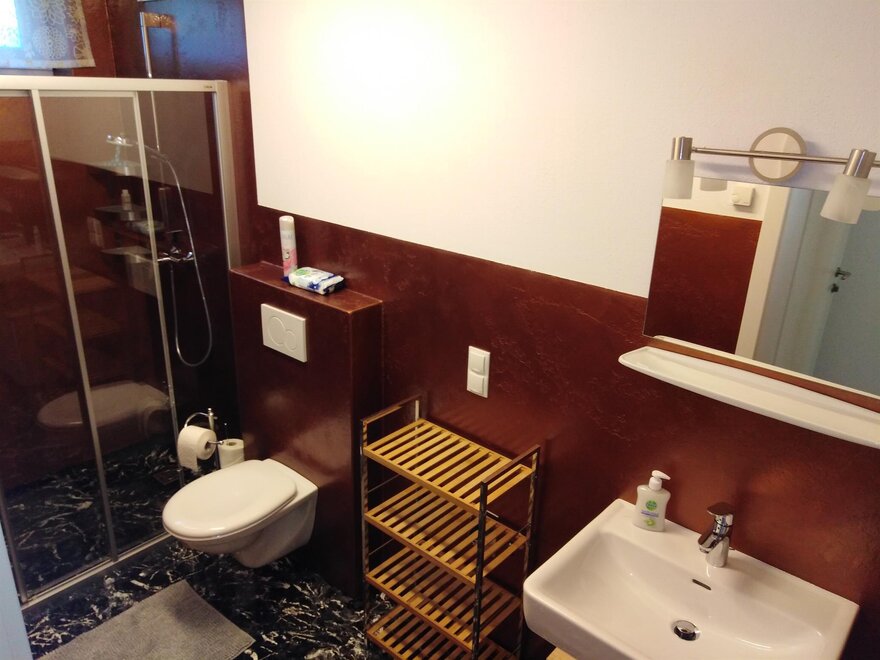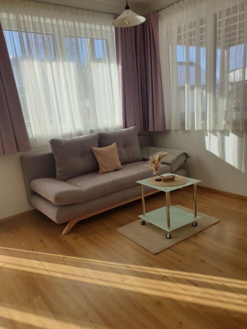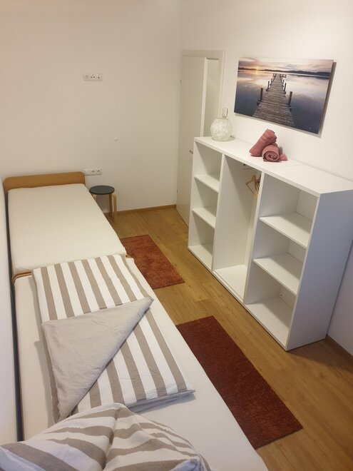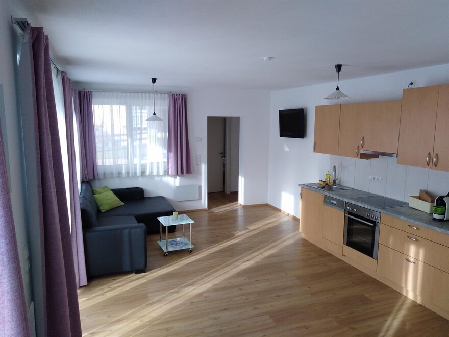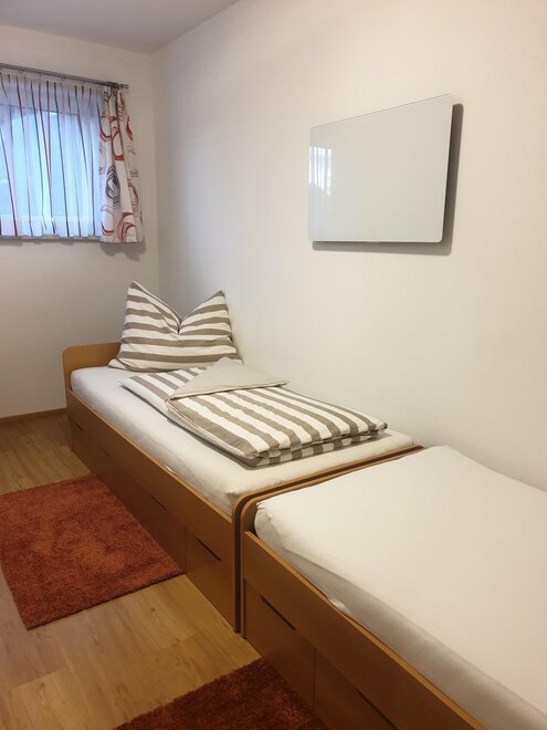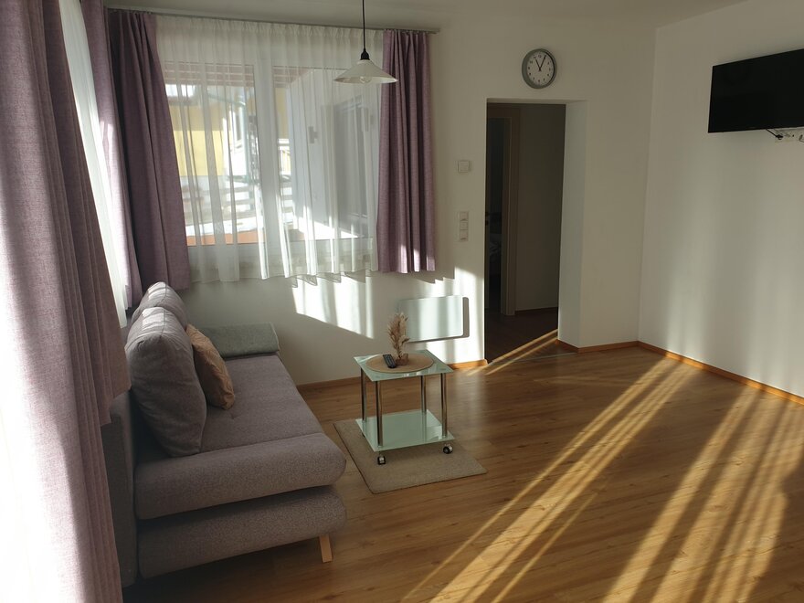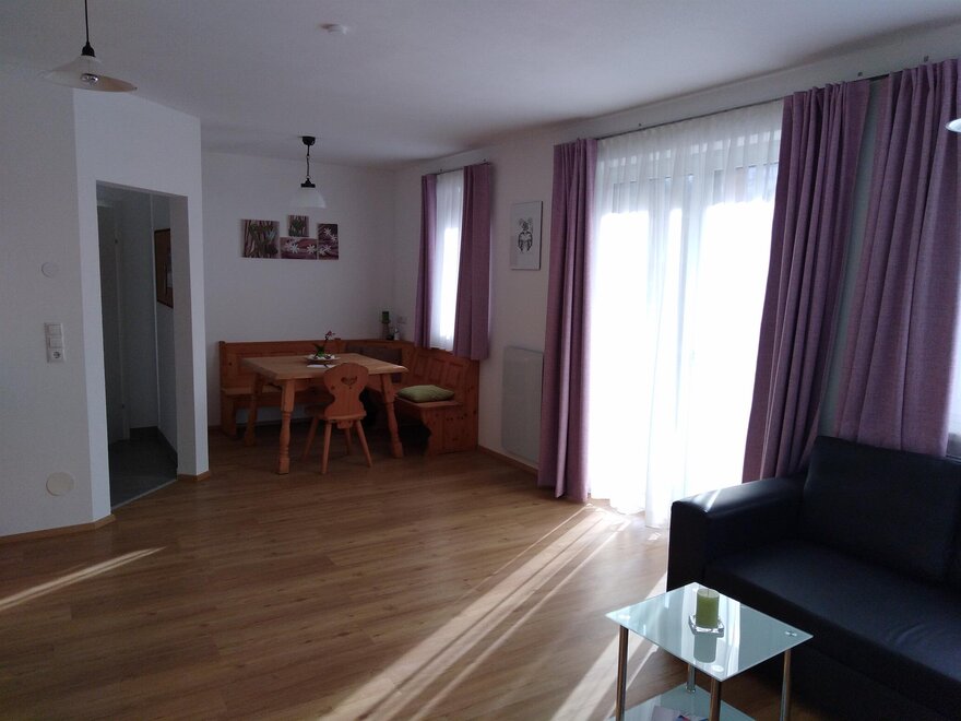 Naše apartmá Dorrer má 2 oddělené ložnice (1x s manželskou postelí a 1x se 2 oddělenými postelemi) a také prostornou, plně vybavenou obývací kuchyni se jídelním koutem, pohovkou a plochou televizí. Koupelna s sprchou a WC a předsíň se sušičkou na boty. Zdarma W-Lan!