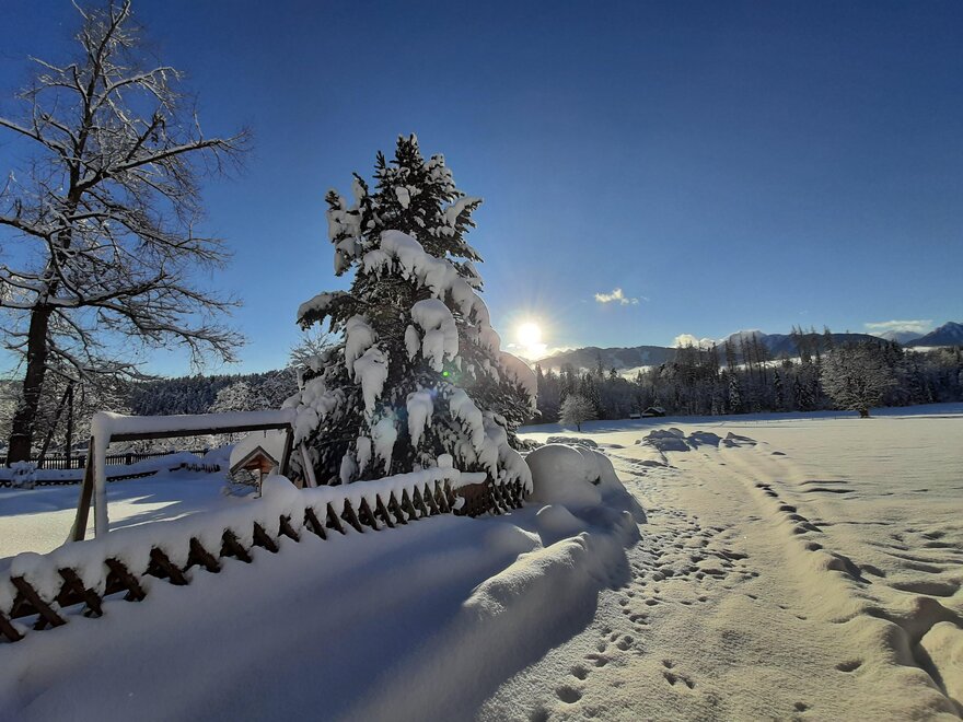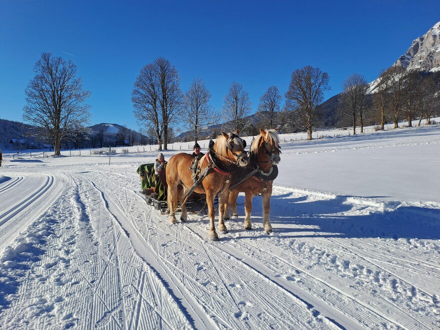 V zimě je vstup do sítě běžeckých tratí a zimních turistických stezek přímo před dveřmi. A také rodinné sjezdovky v Ramsau jsou jen kousek dál. Umístěni v srdci Ski amadé, do 15 minut dojedete autem nebo skibusem na ski areál 4-Berge Hauser Kaibling, Planai, Hochwurzen, Reiteralm a na ledovec Dachstein. Sjezdovky v Ramsau a regionu Schladming-Dachstein, které jsou zaručeně pokryty sněhem, Vás nadchnou. Pro všechny, kteří chtějí mít klidnější tempo, organizujeme romantickou jízdu kočárem taženým koňmi s naší vlastní výpravou.