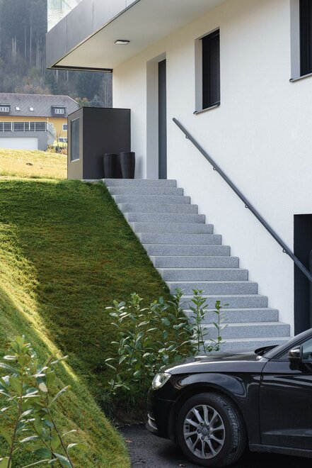 Ze západu: A 10 Tauernautobahn do uzlu Altenmarkt/Pongau - B 320 Ennstalbundesstraße - Sjezd: Haus im Ennstal - Západní vjezd, odbočit vlevo na Oberhauser Straße, po 30 m odbočit vpravo na Krummholzstraße - první ulice vlevo odbočit na Kalvarienbergstraße - na konci Kalvarienbergstraße odbočit vlevo na Herzmoargasse