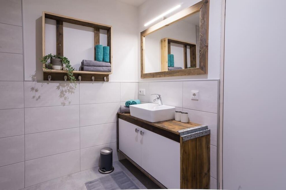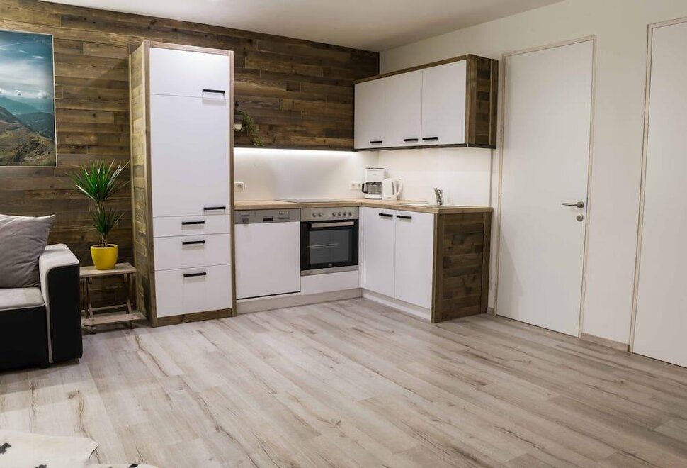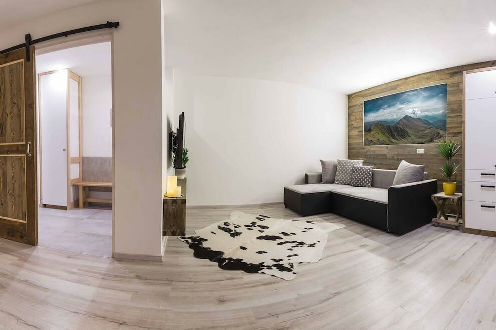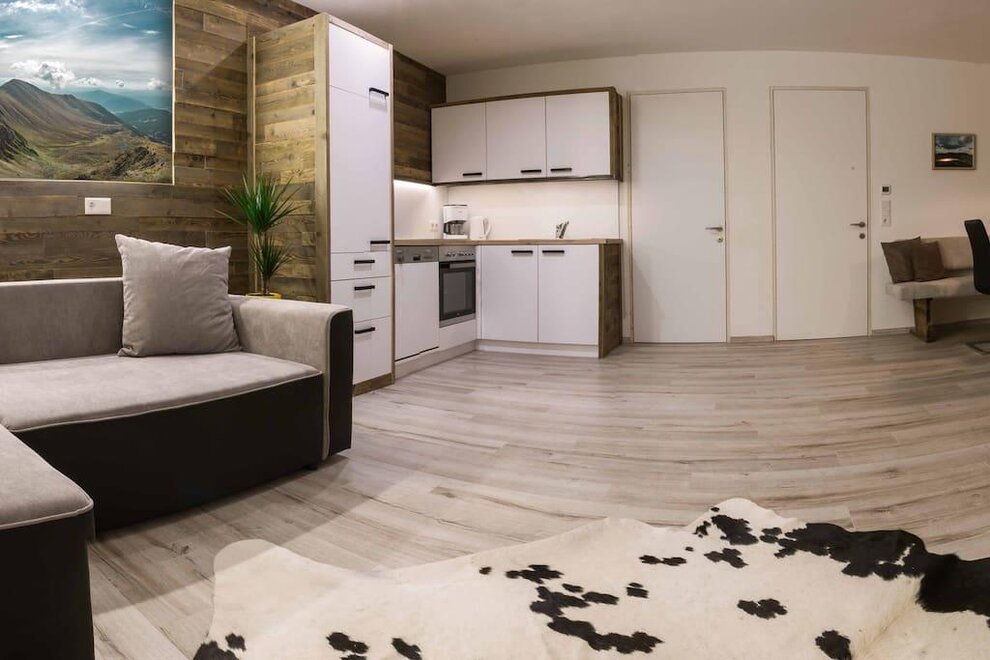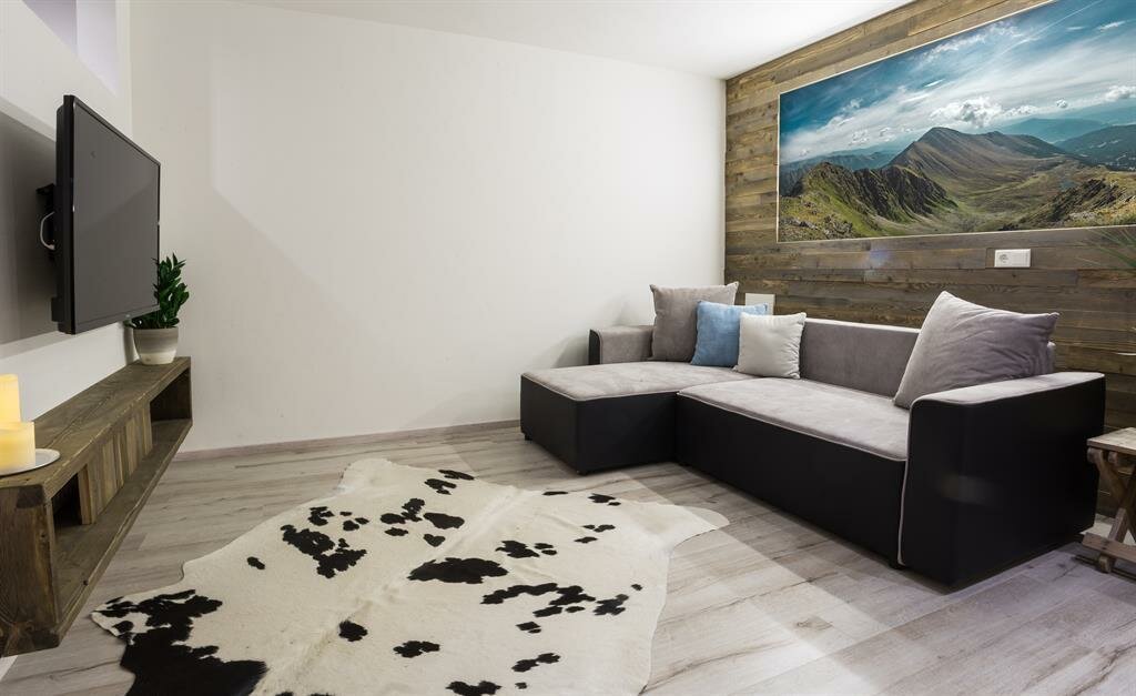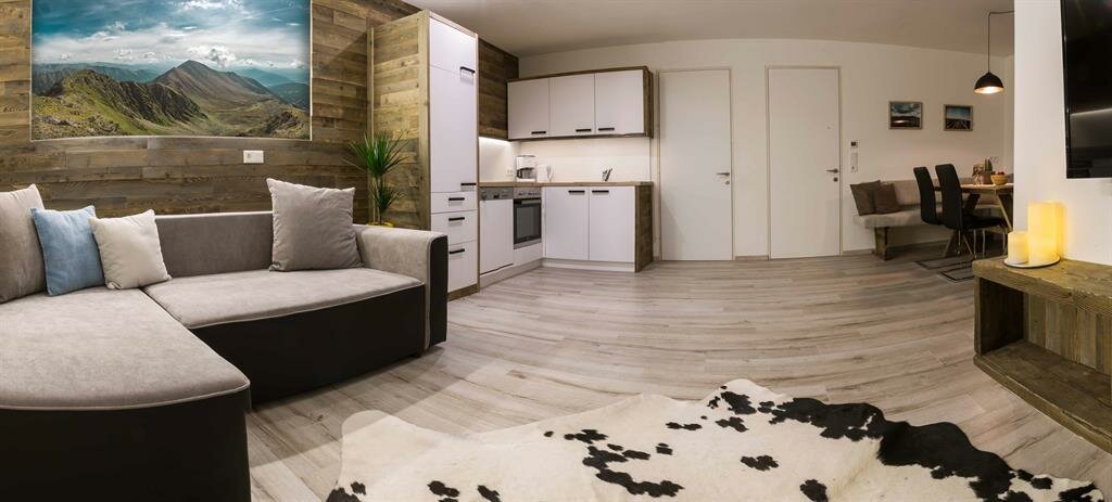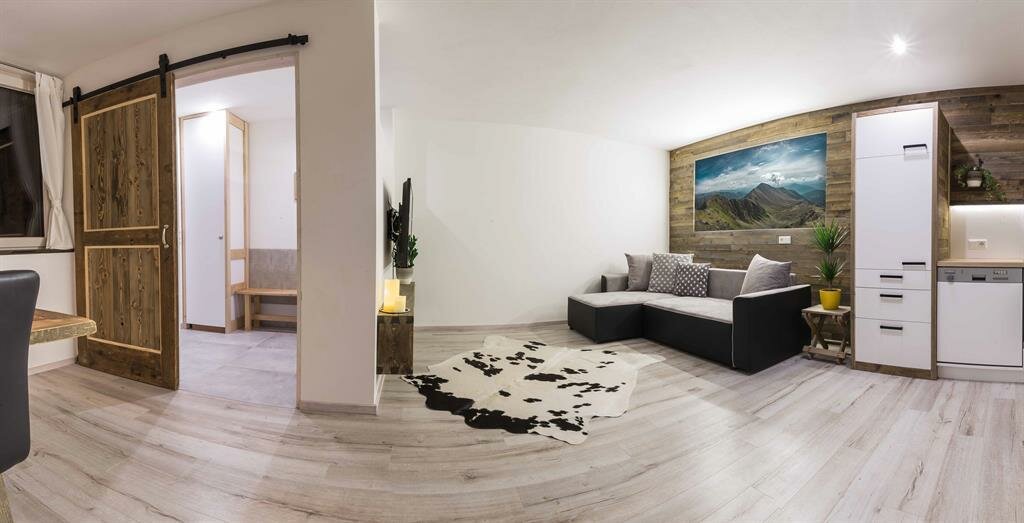 Apartmán o velikosti přibližně 55 m² má jídelní část a pohovku na spaní s plochou obrazovkou a kabelovou TV, terasu s výhledem na hory a velkou ložnici s manželskou postelí. Kuchyně je vybavena myčkou nádobí a troubou. Dále je k dispozici lednice, varná deska, kávovar a rychlovarná konvice. V vlastní koupelně najdete sprchu a samostatné WC.
