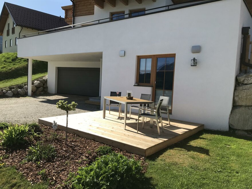 Dále nabízíme vlastní sluneční terasu s krásným výhledem na horskou krajinu, kterou si můžete užívat ráno nebo si ji příjemně vychutnat při západu slunce.