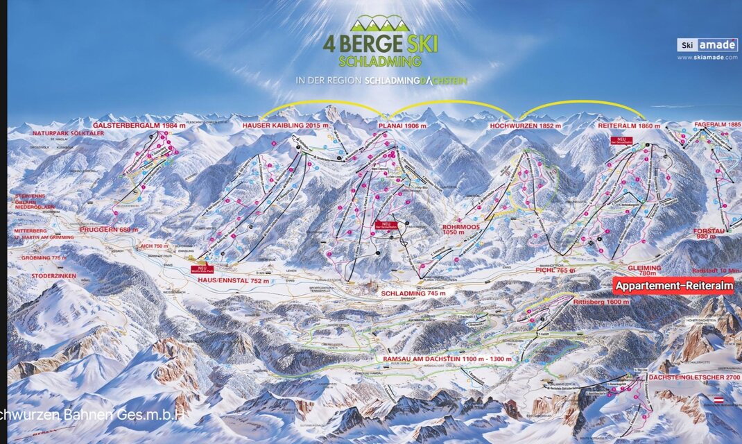 PŘÍMO vedle 4-horského lyžařského okruhu Amade - Reiteralm - Silverjet (dostupné pěšky za 3 minuty)