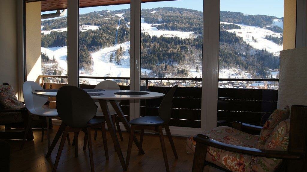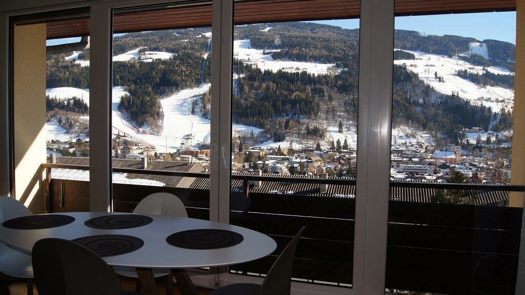 Byt Sonnenhang se nachází na Sonnenhang s výhledem na Schladming, Planai a okolní hory. Pěšky je to jen několik minut do centra a k lanovkám na Planai. Ski a citybus zastavuje vedle naší podzemní garáže na Hochstraße. K bytu se dostanete také z garáže přes zahradu.