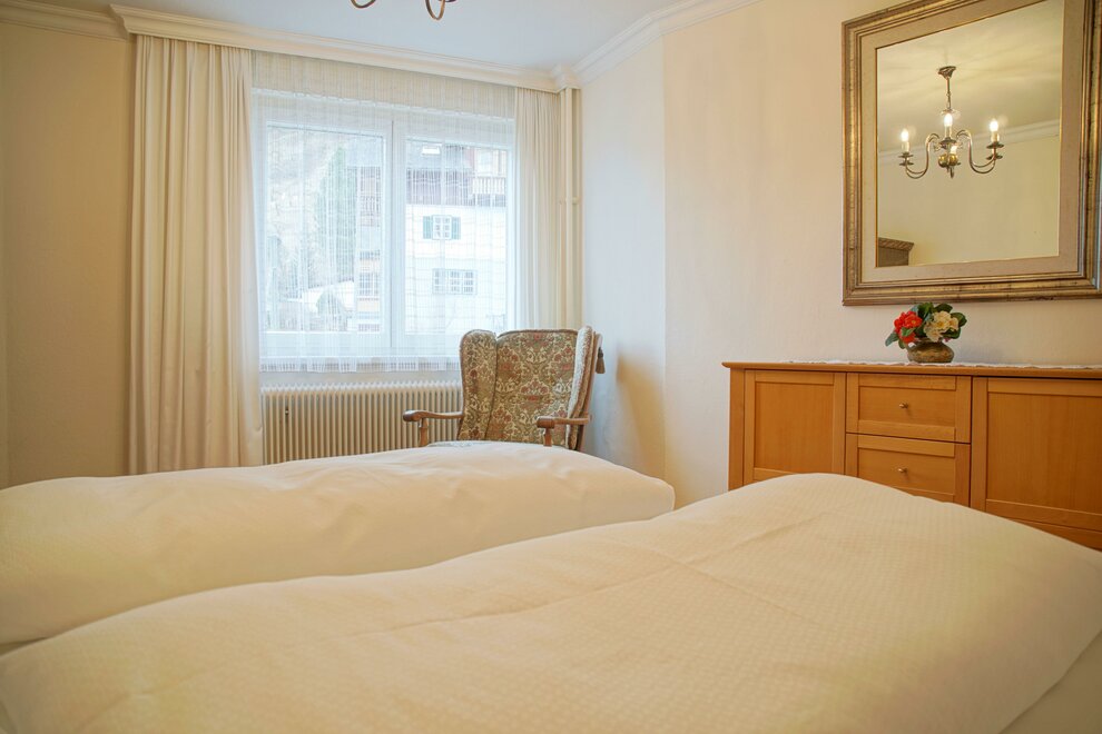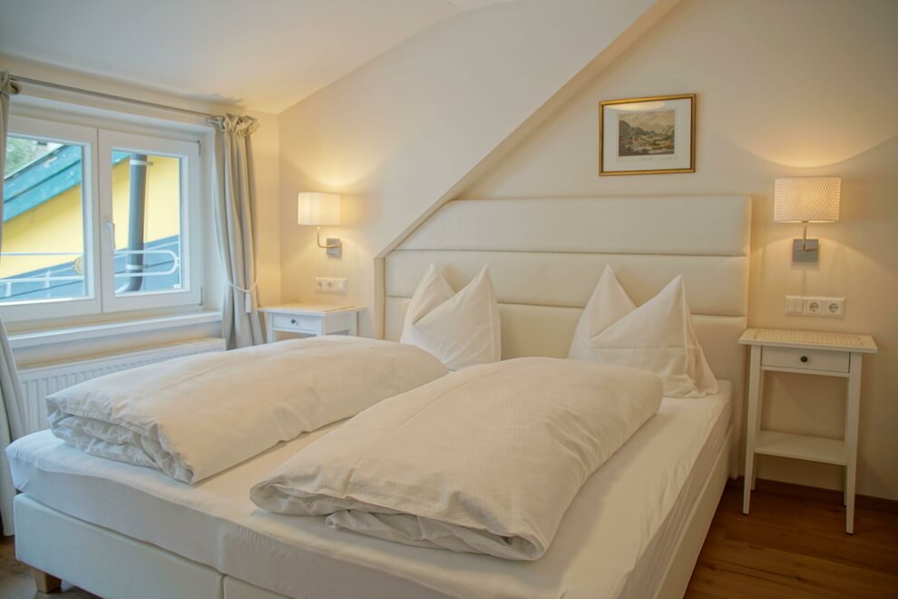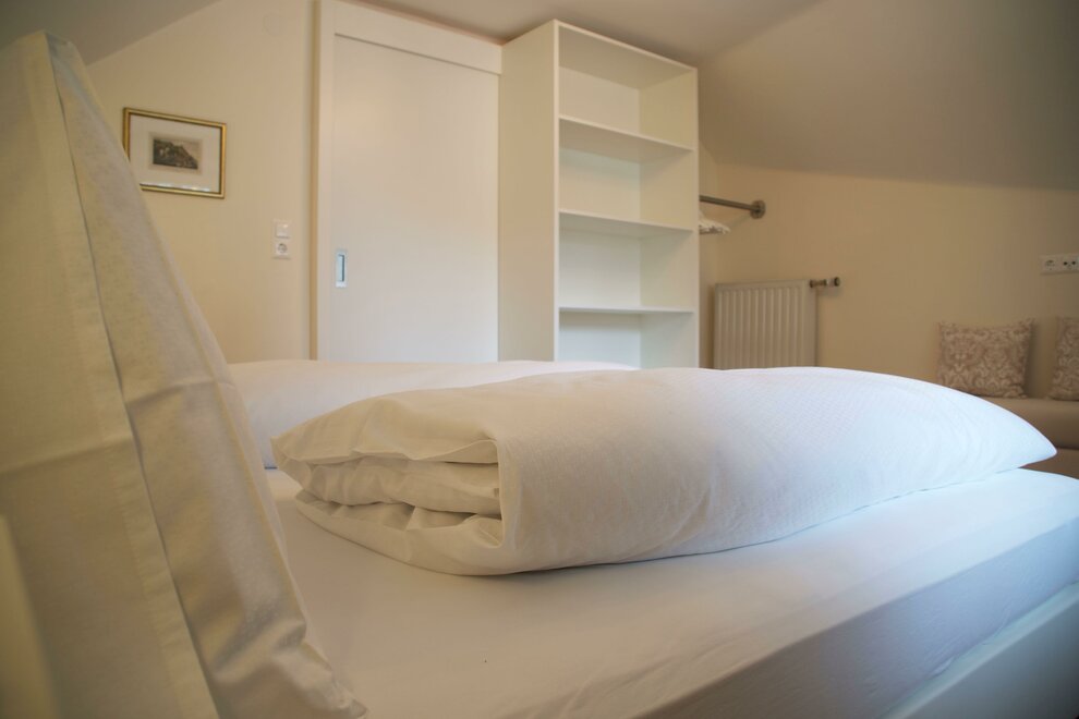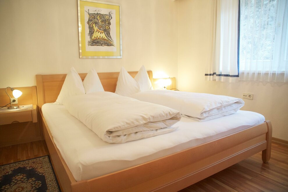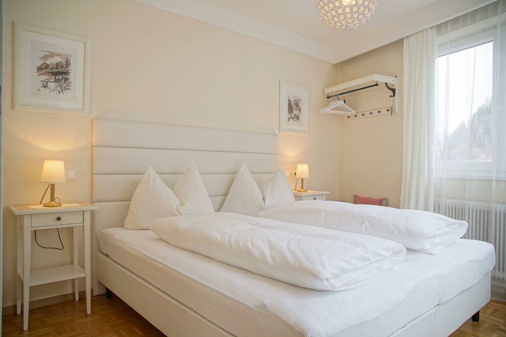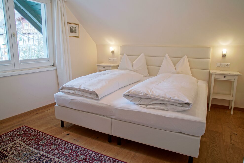 Pohodlný apartmán se dvěma ložnicemi s boxspringovými postelemi a koupelnou s WC.