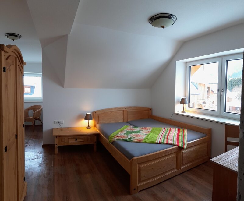 Má 2 samostatně přístupné ložnice (2lůžkový pokoj, 3lůžkový pokoj), přičemž každá má přístup na společný balkon s nádherným výhledem na horský svět Sölktalů.