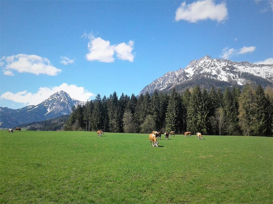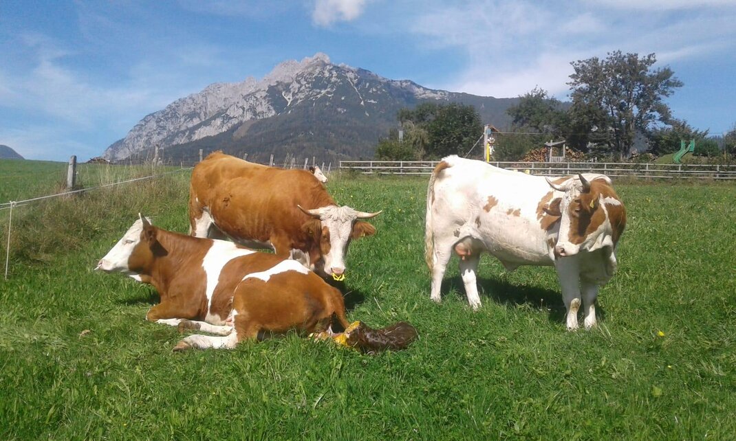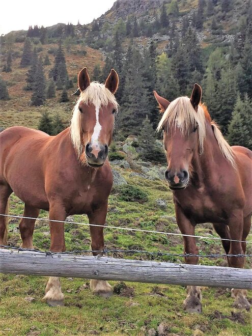 Kromě toho máme dvě klisny Noriker, dvě prasata a čtyři kočky. K našemu hospodářství patří také vlastní alpská louka, Kaltenbachalm, kterou v létě tradičně zemědělsky obhospodařujeme, včetně maloobchodního prodeje. Kaltenbachalm se nachází přibližně 30 km od Berndlhofu, leží ve výšce 1600 m na úpatí Sölkpassu a v letních měsících je snadno dostupná automobilem.