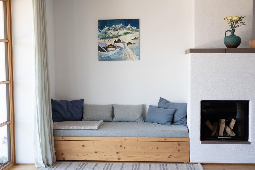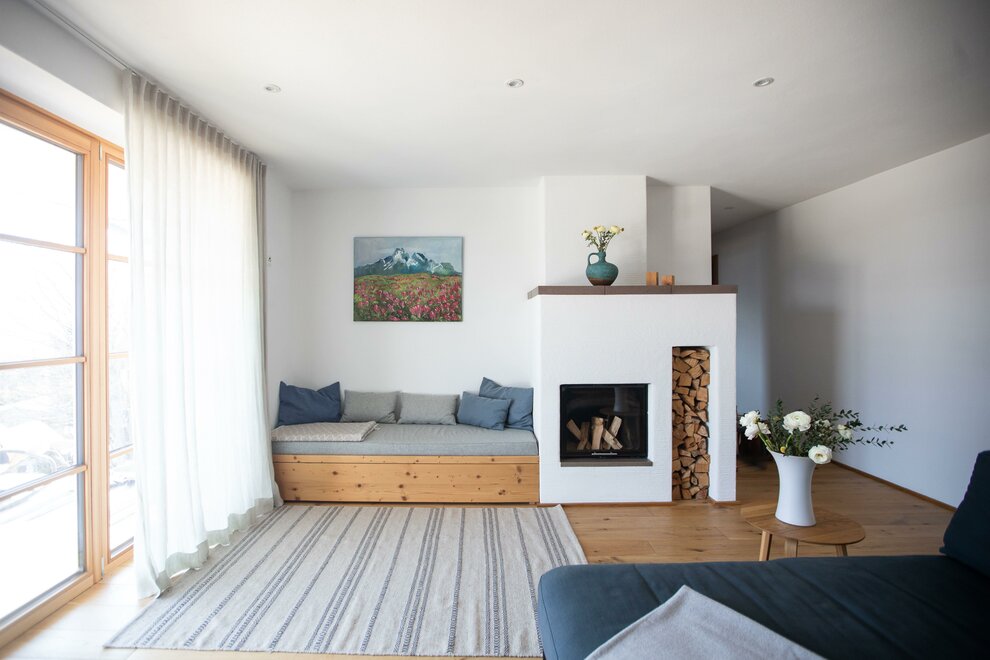 Byt je orientován na jih, což zajišťuje, že je velmi světlý. Útulný krb vytváří zejména v zimě příjemnou atmosféru.Vybavení pokojů