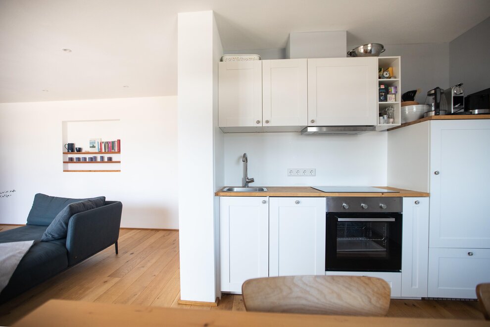 Hosté mají přístup k celému bytu prostřednictvím samostatného vchodu v dolní části nově postaveného domu.
